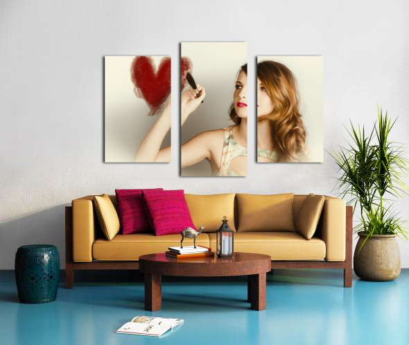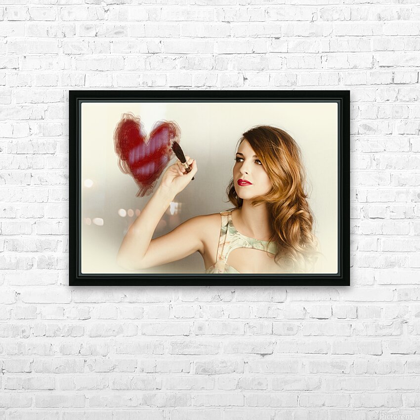 Beautiful retro girl painting red love heart Frame print