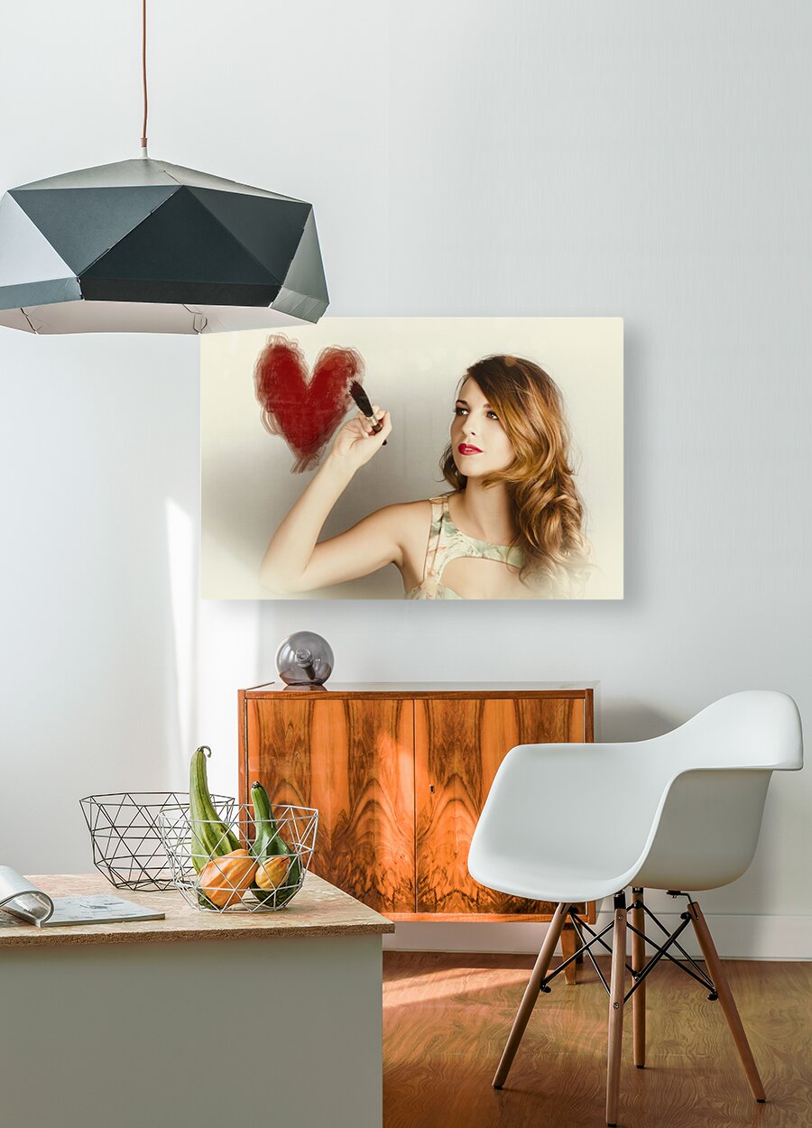 ABOUT THIS ARTWORK: BEAUTIFUL RETRO GIRL PAINTING RED LOVE HEART