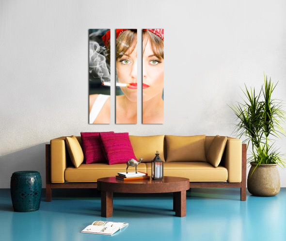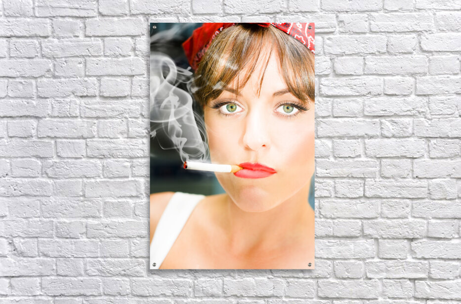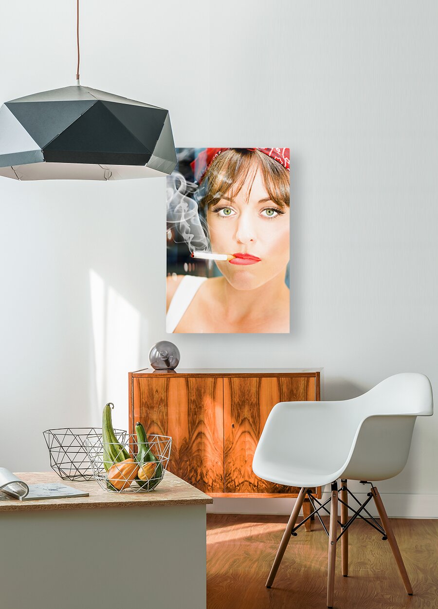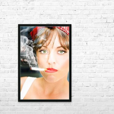 Unhappy Woman Smoking Cigarette Picture Frame Printing
