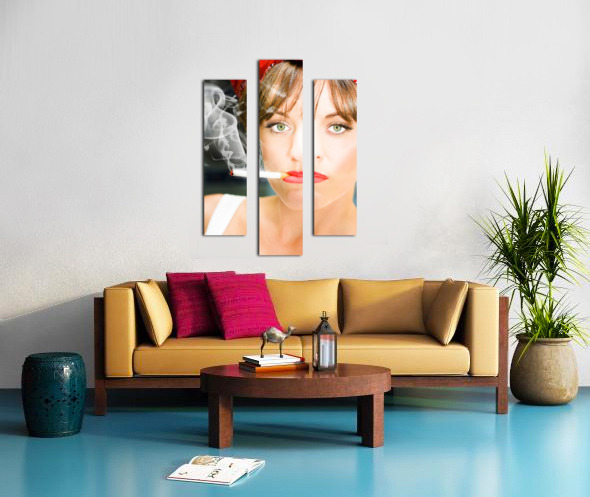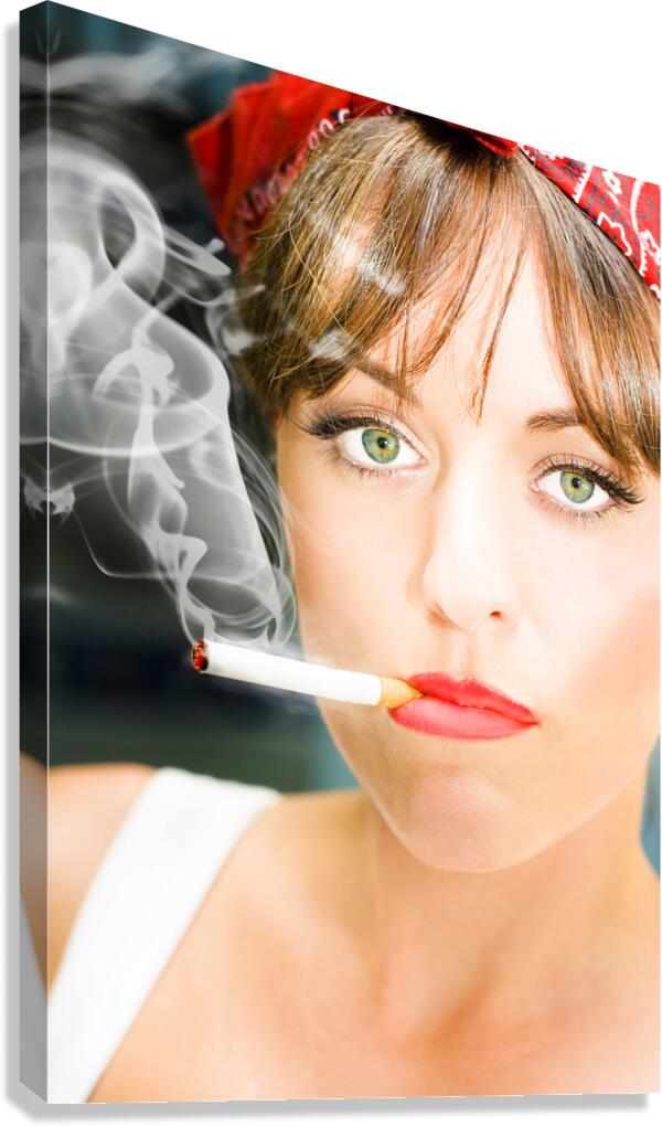 Unhappy Woman Smoking Cigarette Canvas print