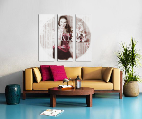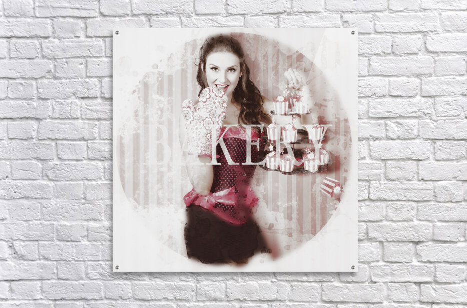 Pinup girl cooking up surprise treat in bakery Picture Frame Printing