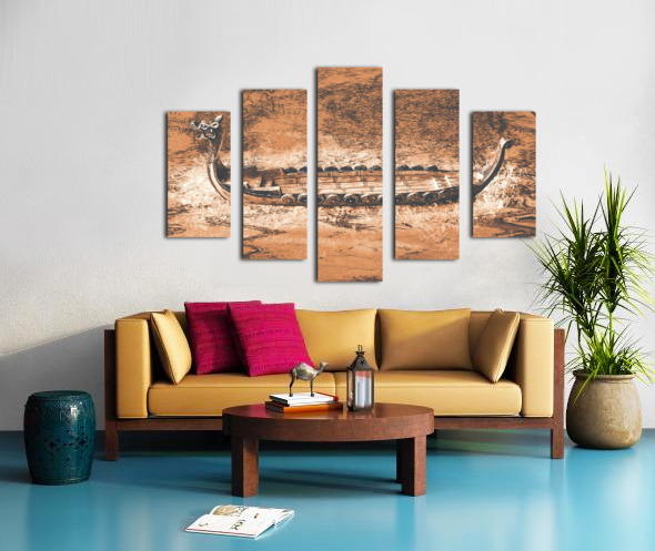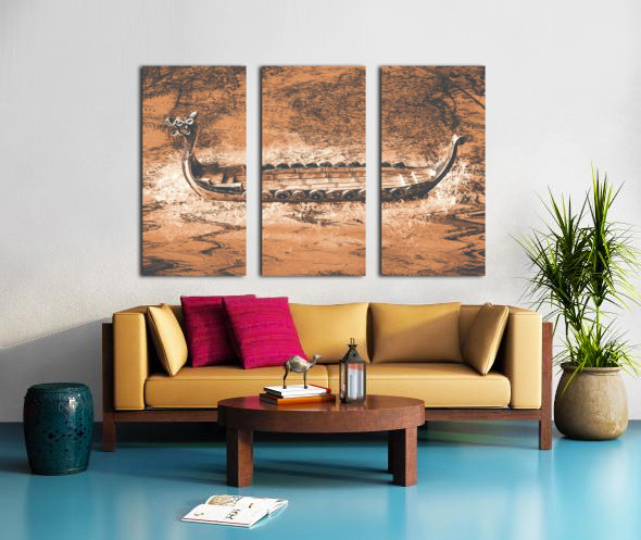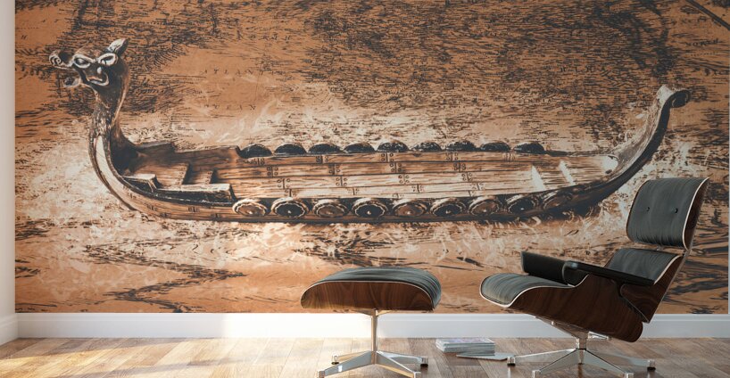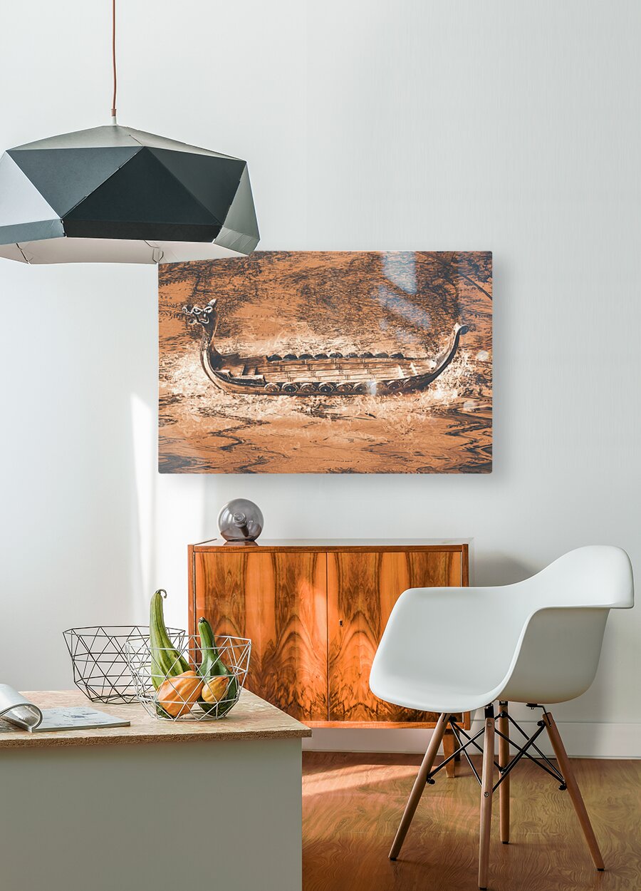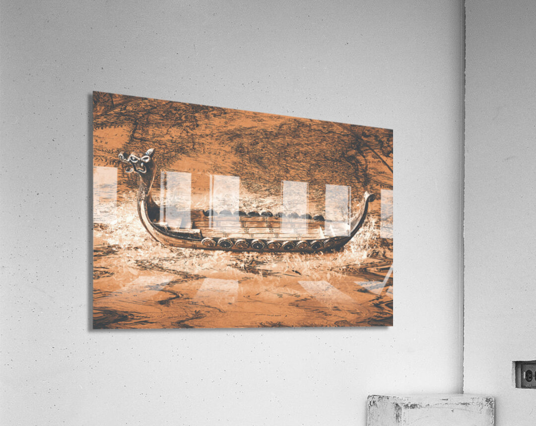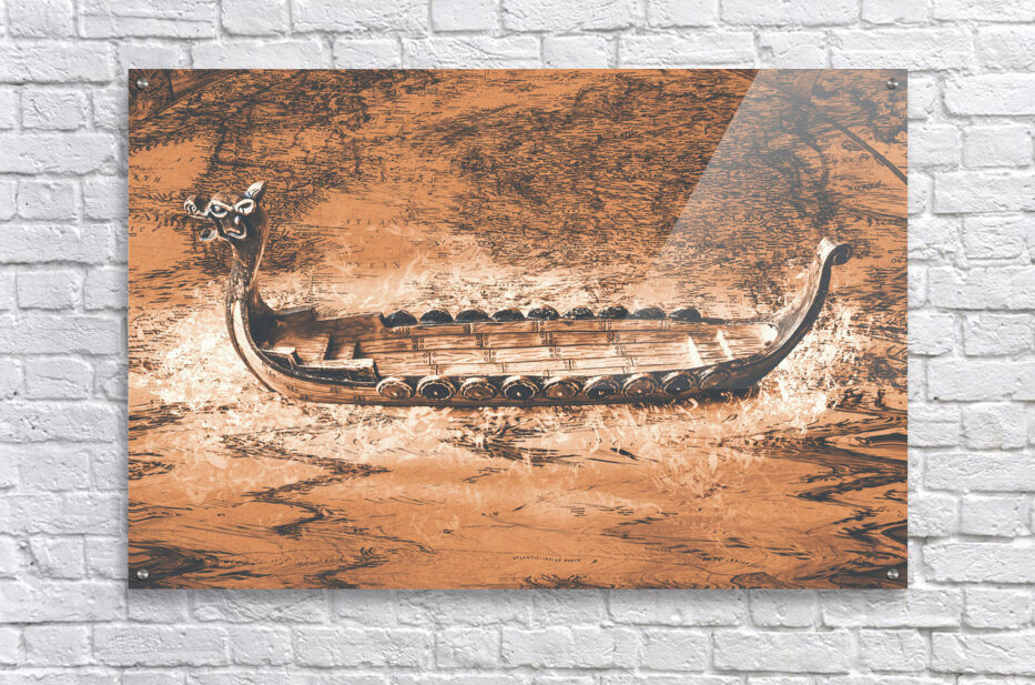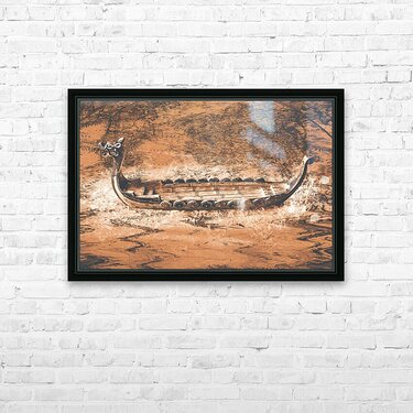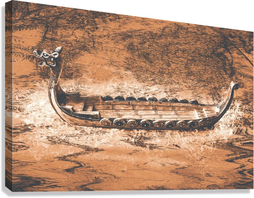 A viking scene in maritime creativity with Scandinavian long-ship in a splash of mapping battles