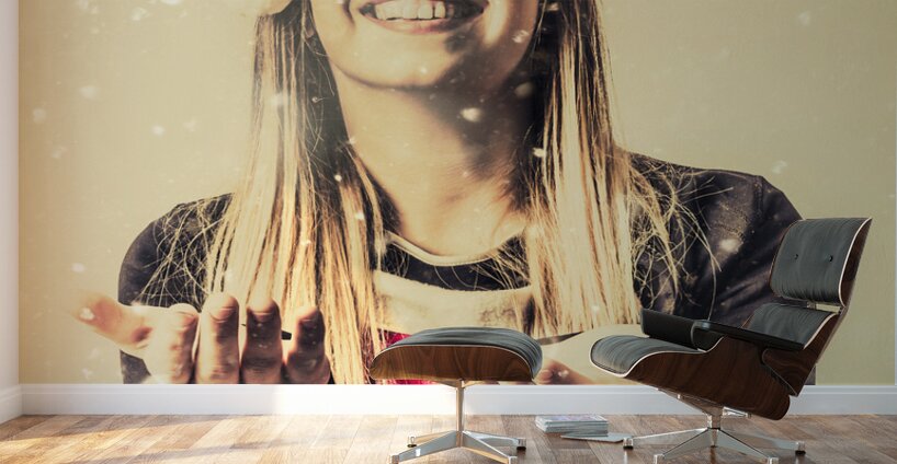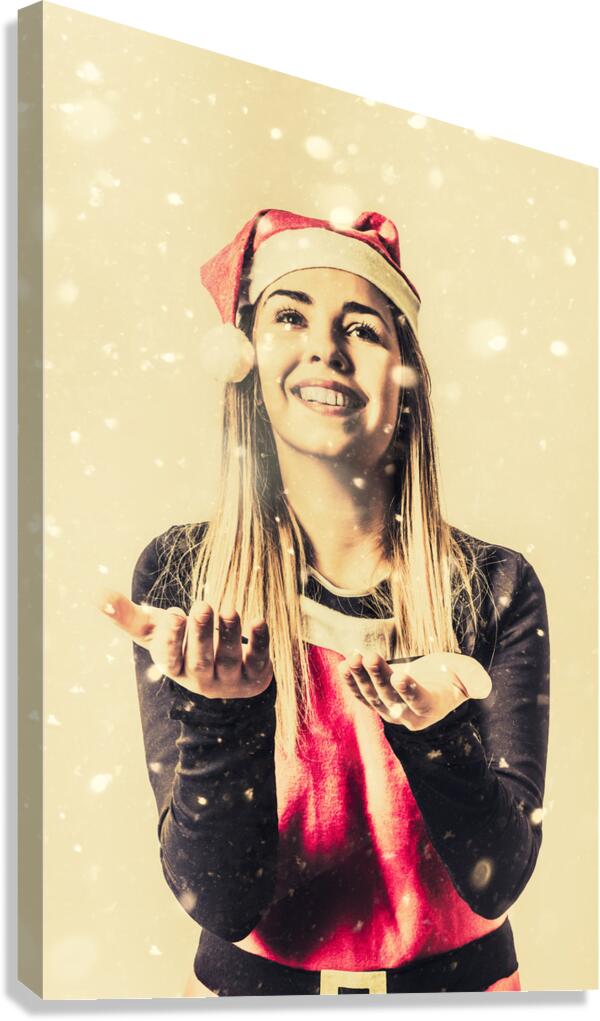 Get this artwork " Vintage girl celebrating a white Christmas" in a framed print.