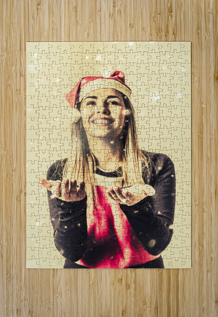 Vintage girl celebrating a white Christmas Jorgo Puzzle printing