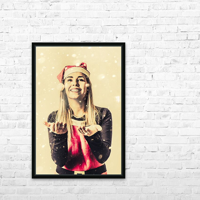 Vintage girl celebrating a white Christmas Picture Frame Printing