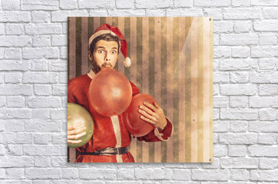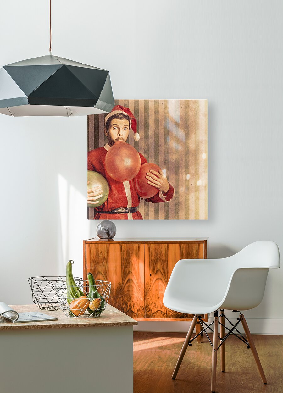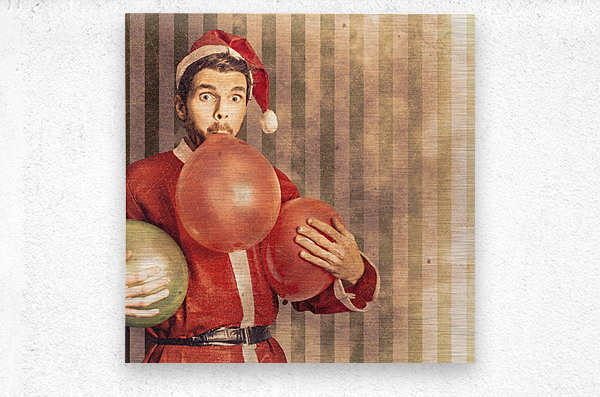 Vintage santa preparing for christmas party  Wood print