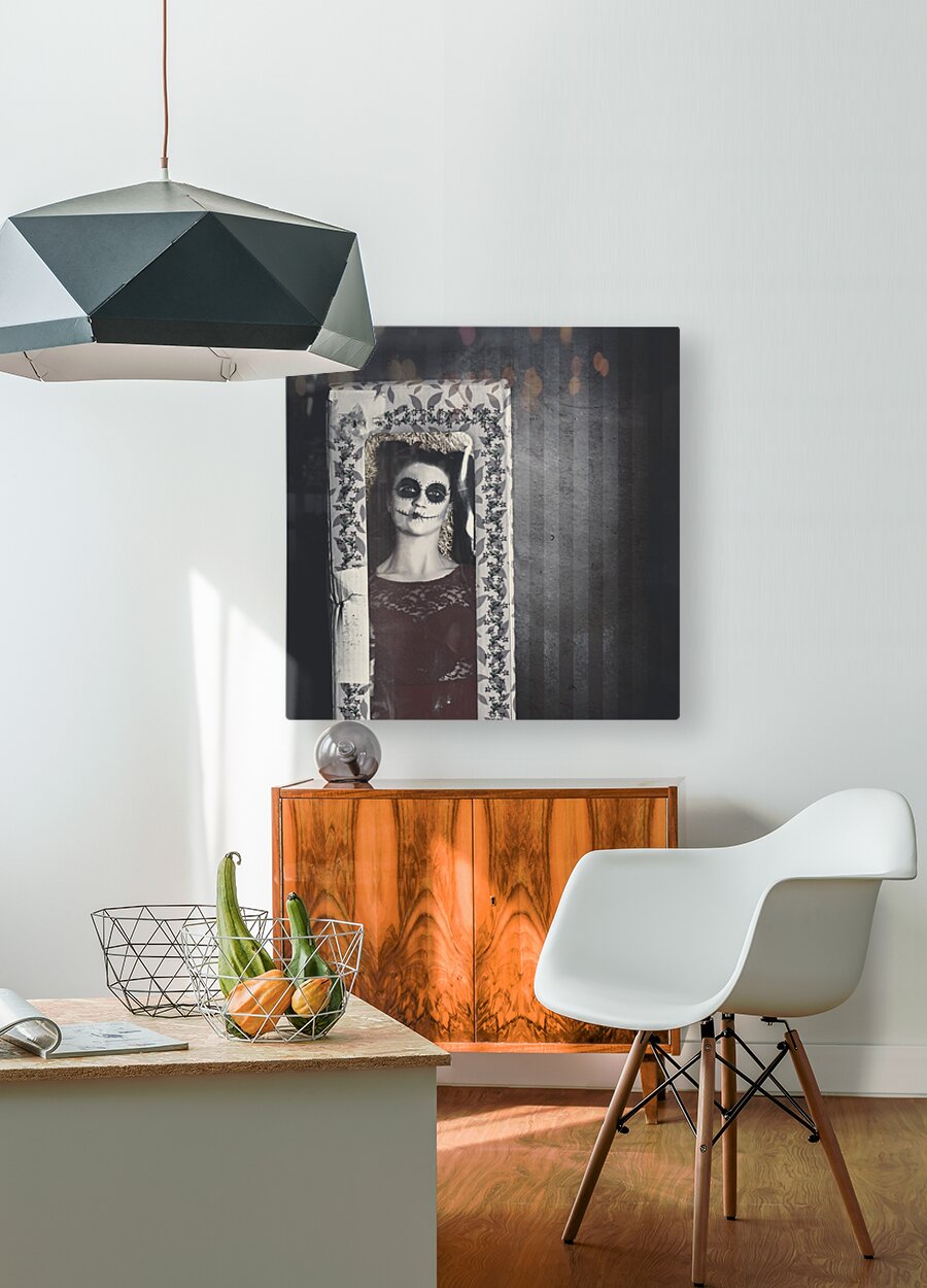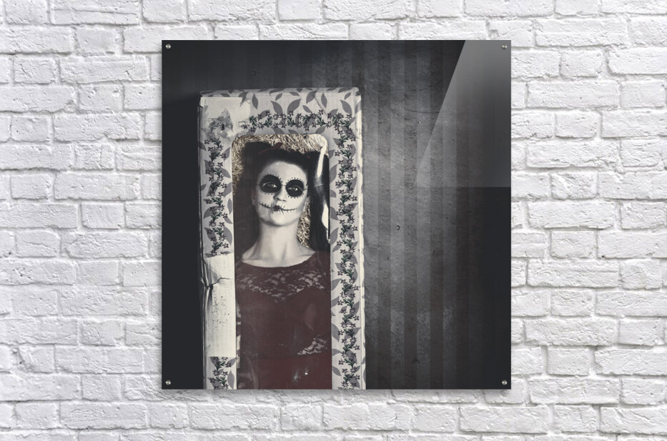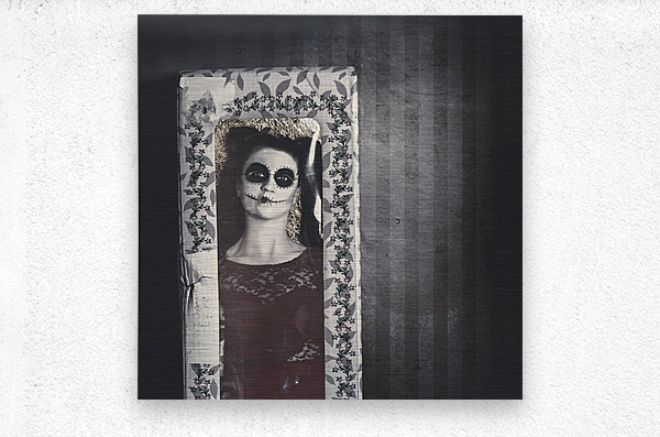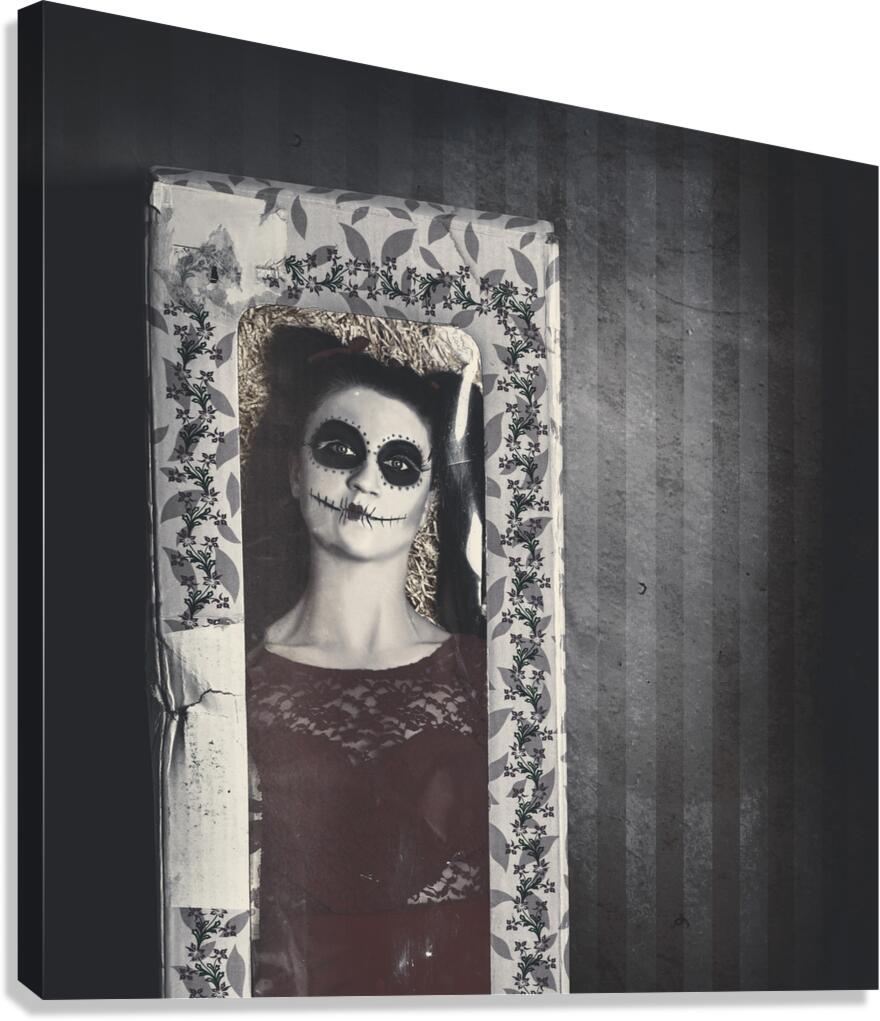 Get this artwork "Possessed sugar skull doll inside vintage toy box" in a framed print.