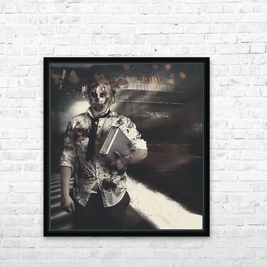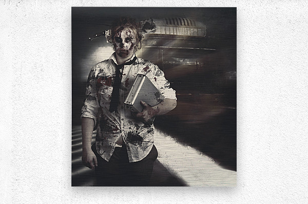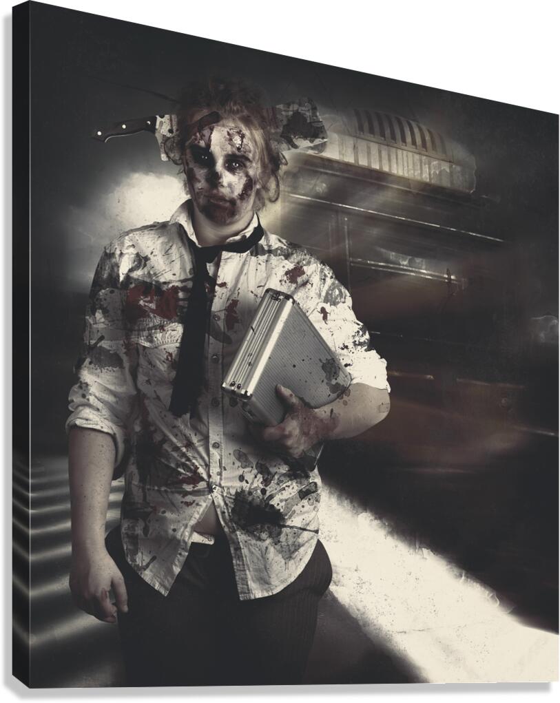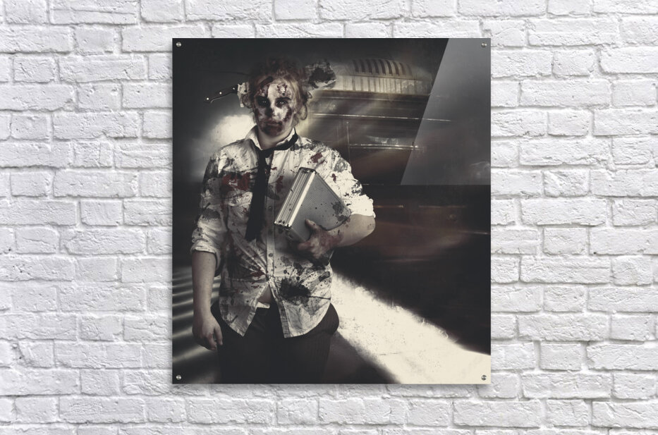 ABOUT THIS ARTWORK: DEAD ZOMBIE BUSINESS WOMAN CATCHING GHOST TRAIN