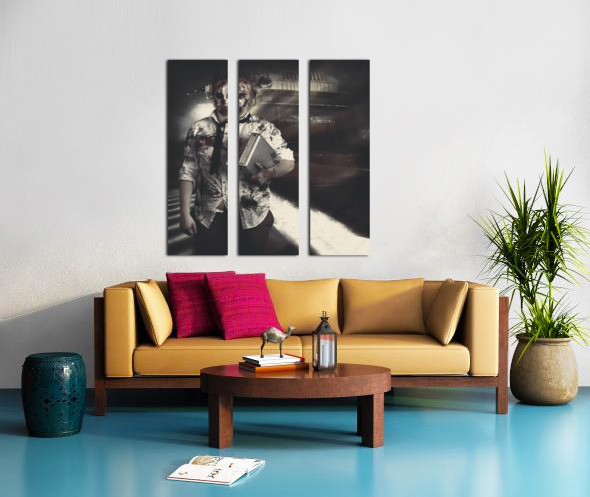 Get this artwork "Dead zombie business woman catching ghost train" in a framed print.