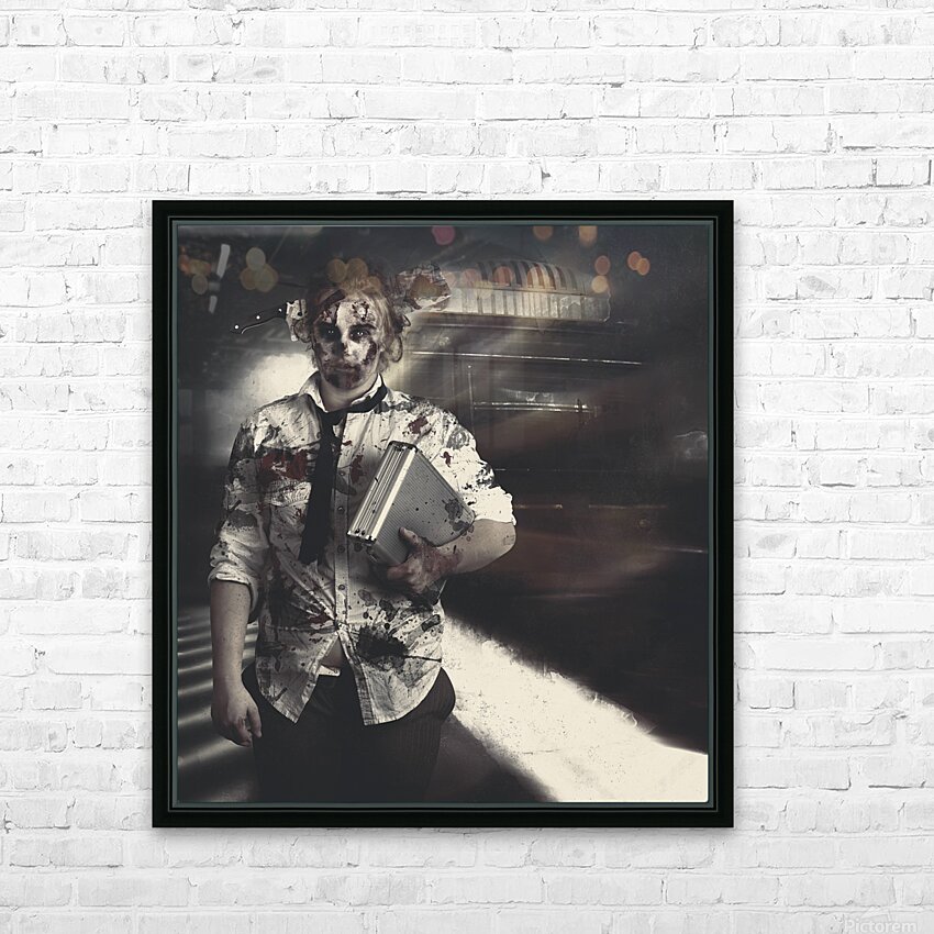 Dead zombie business woman catching ghost train Picture Frame Printing