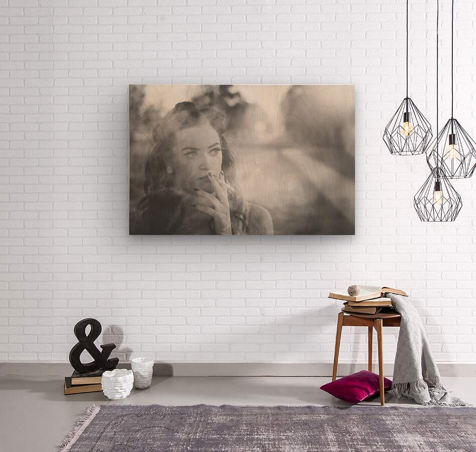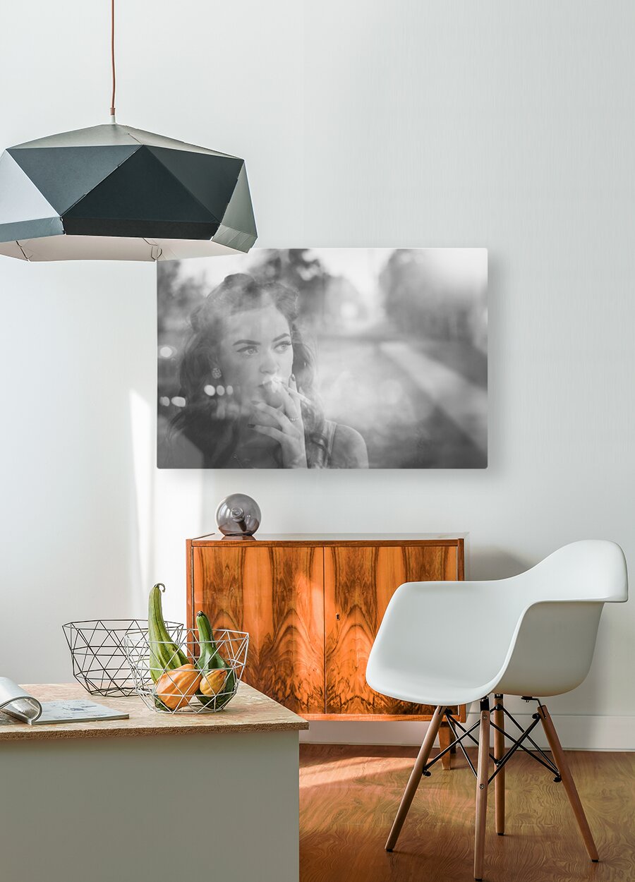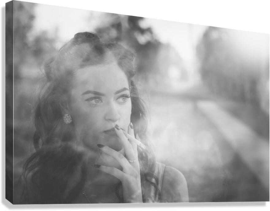 ABOUT THIS ARTWORK: FILM NOIR LADY SMOKING CIGARETTE ON VINTAGE STREET