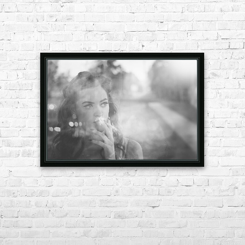 Film noir lady smoking cigarette on vintage street Frame print