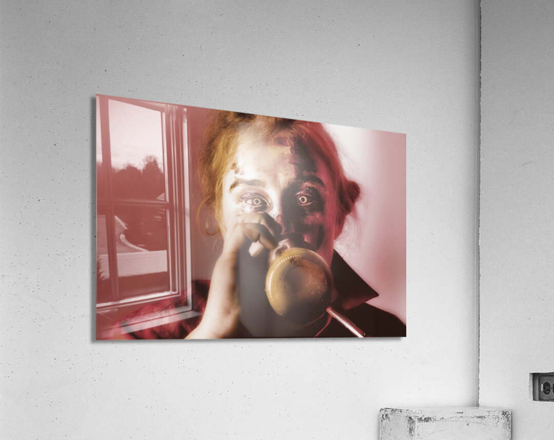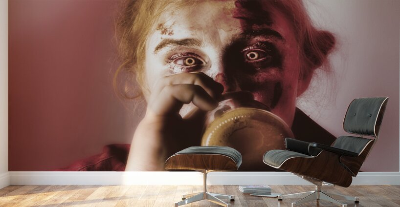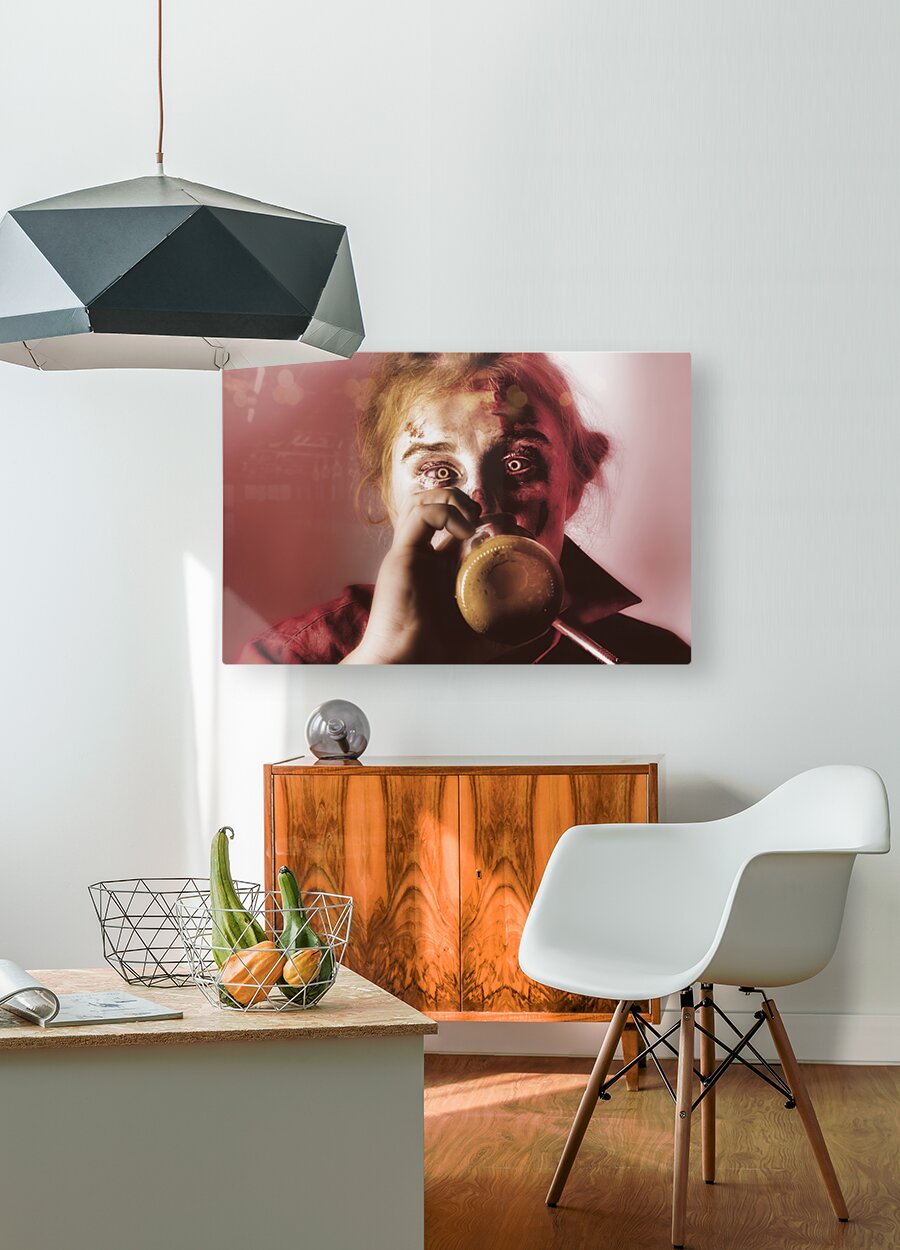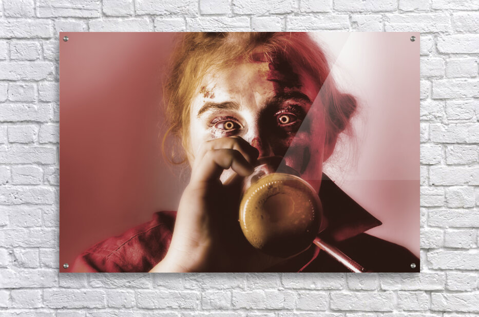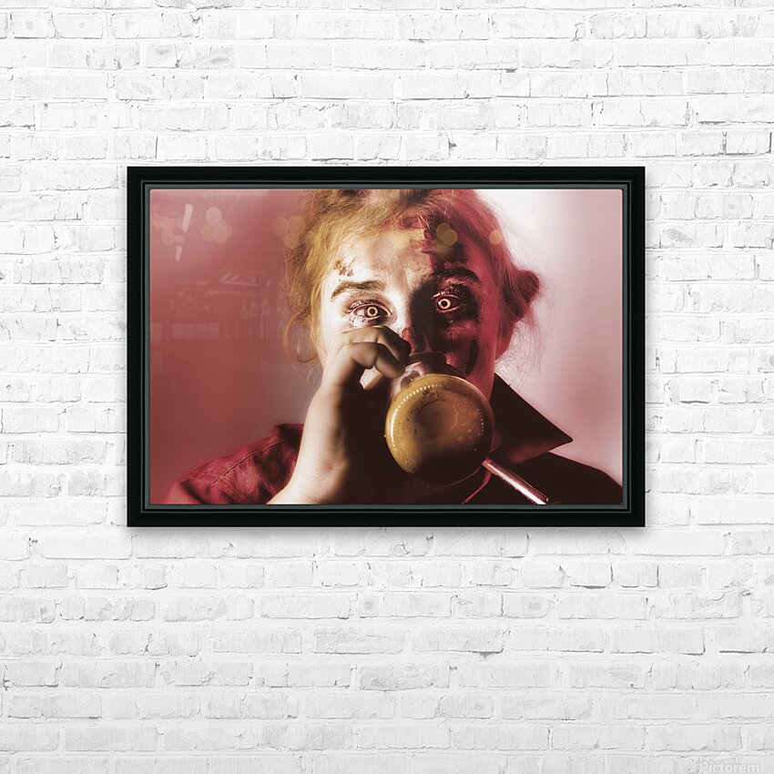 Drunk ghoul sculling beer at Halloween party Frame print