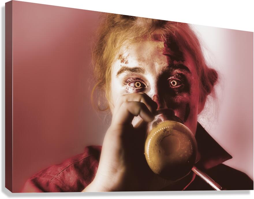 Drunk ghoul sculling beer at Halloween party Picture Frame Printing