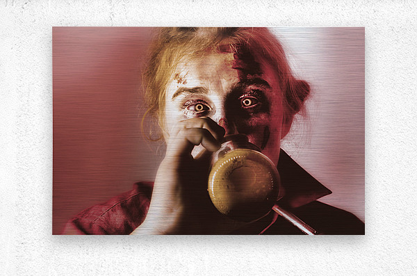 Creepy portrait of a drunken female ghoul drinking beer at Halloween party event
