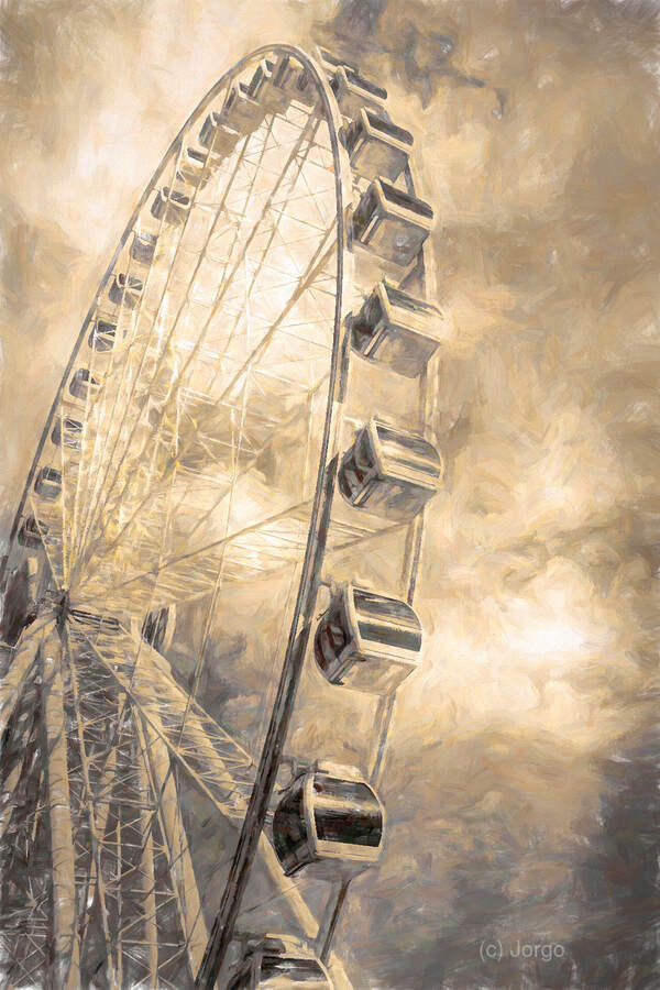 Painterly pass in park perspectives with dreamy ferris wheel in stroked tones of memories spun
