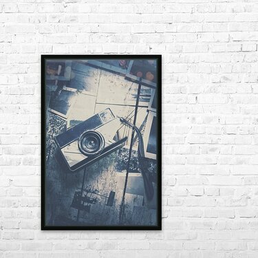 Retro camera and instant photos Frame print