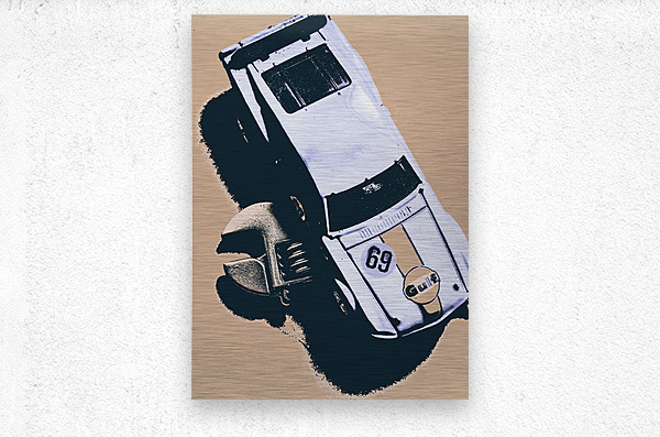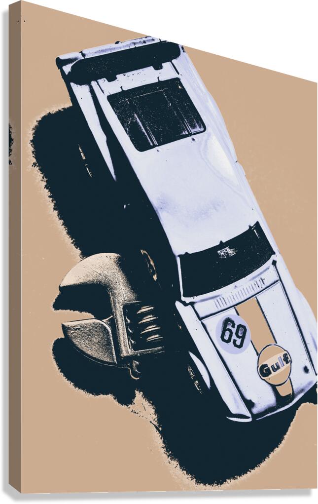 Vintage garage art on a mechanical muscle tune with classic car and repairs wrench