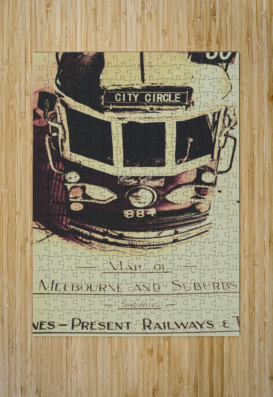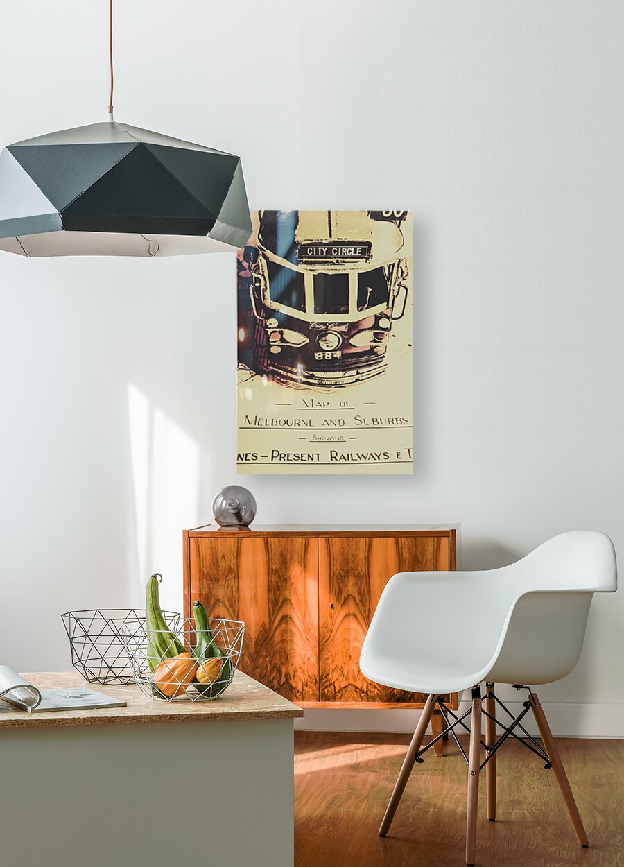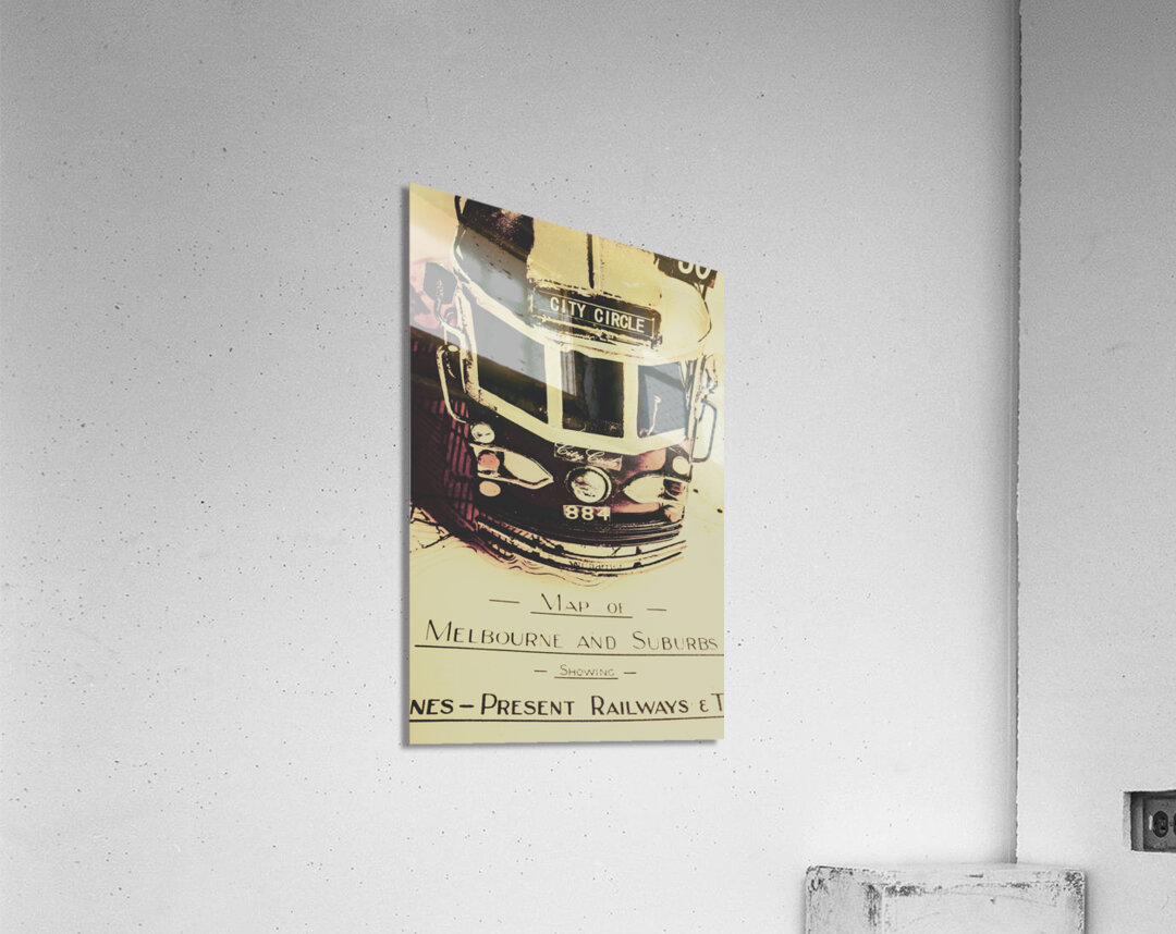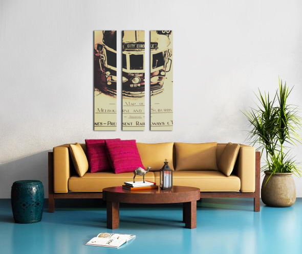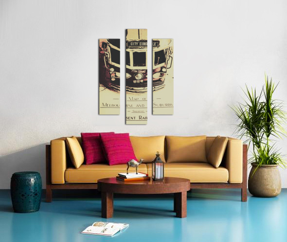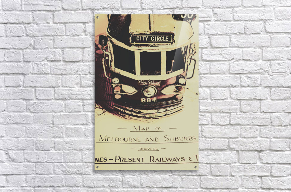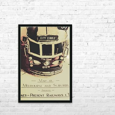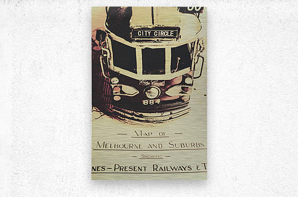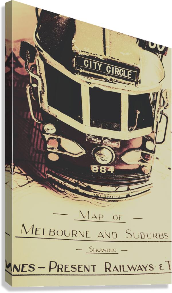 Urban street artwork in the replication of an old Melbourne sightseeing tour with tram on travelling itinerary. Pop art city tours