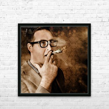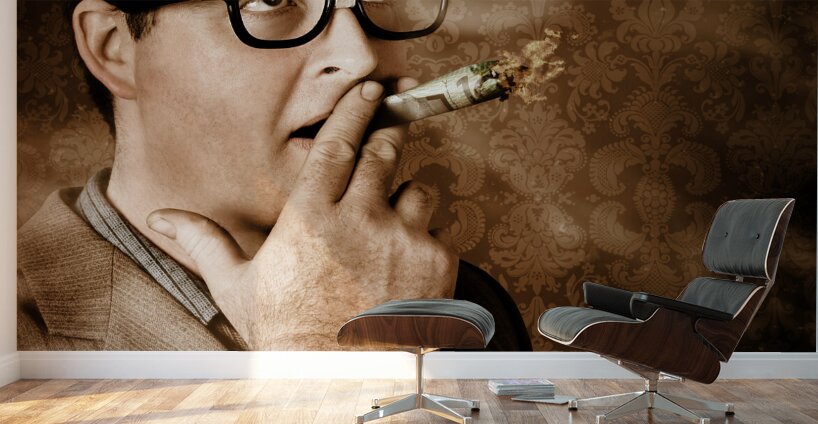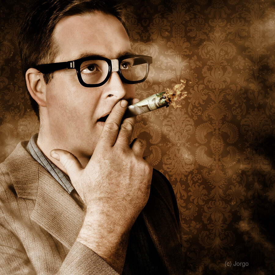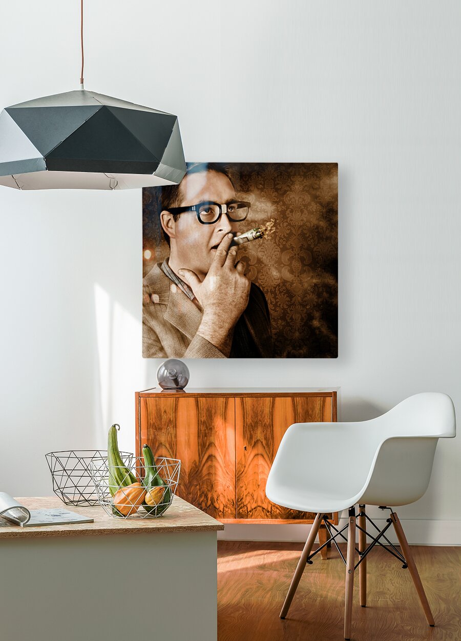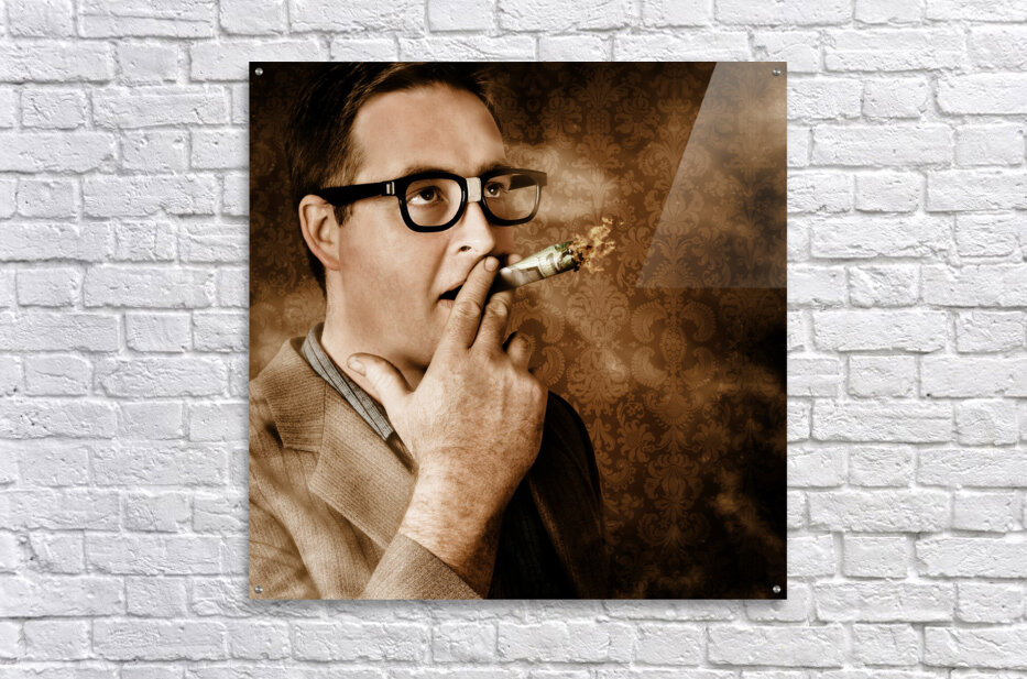 ABOUT THIS ARTWORK: VINTAGE BUSINESS MAN SMOKING MONEY IN SUCCESS