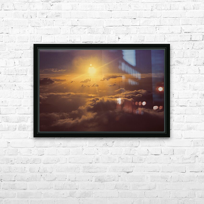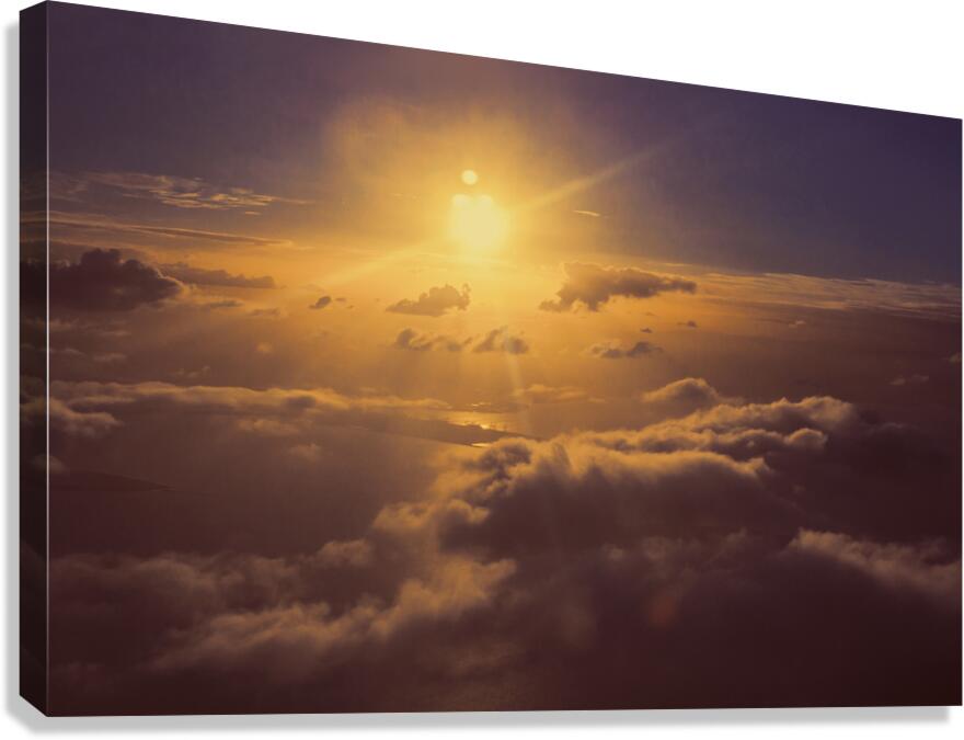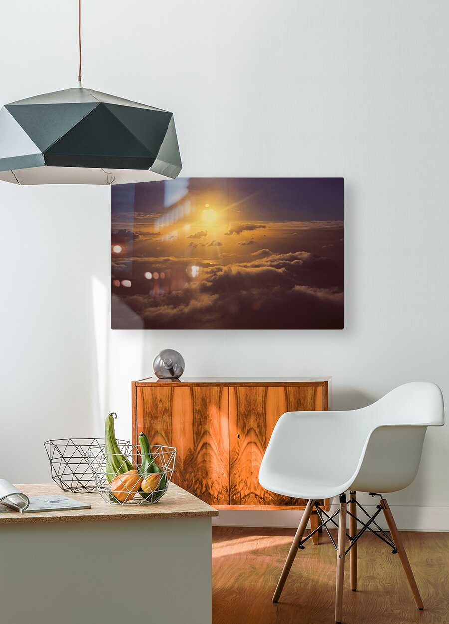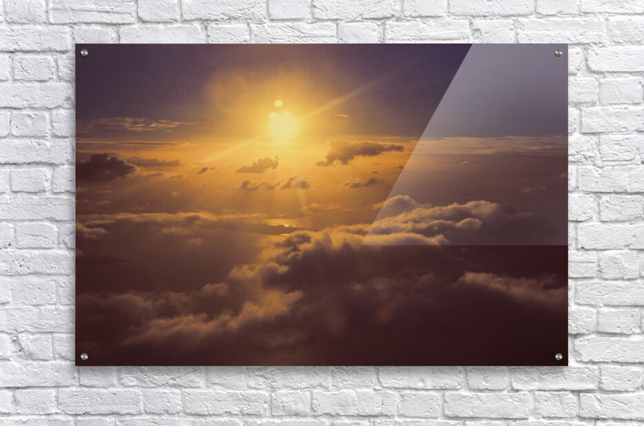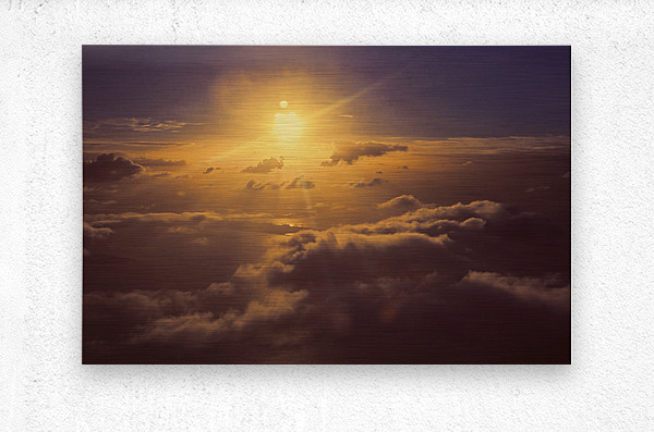 Fine art sunset landscape taken up and above north Brisbane waters from plane window views. Queensland Australia
