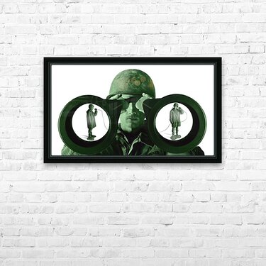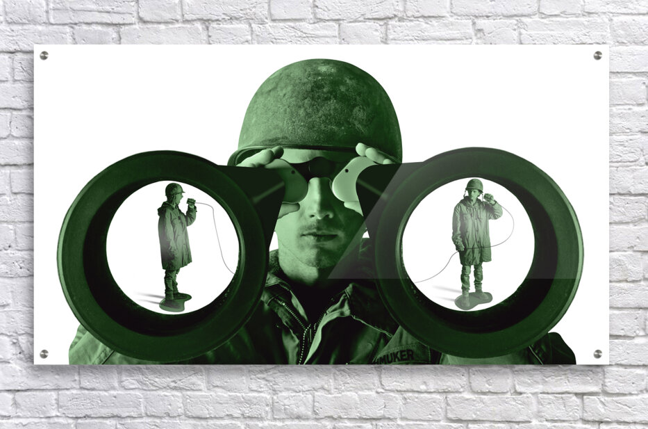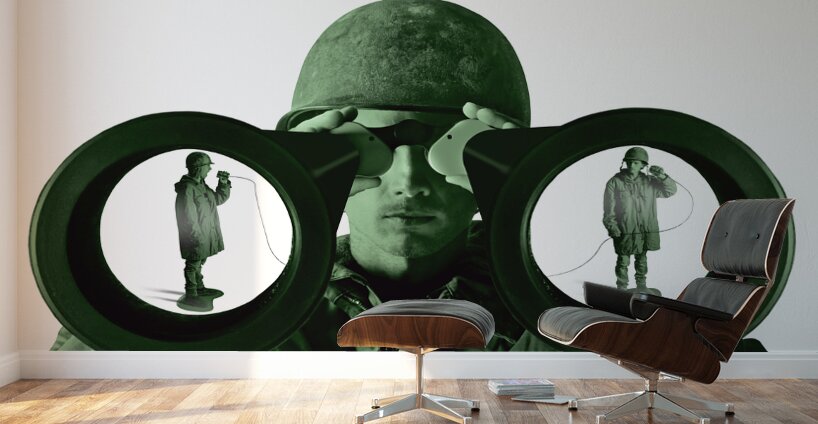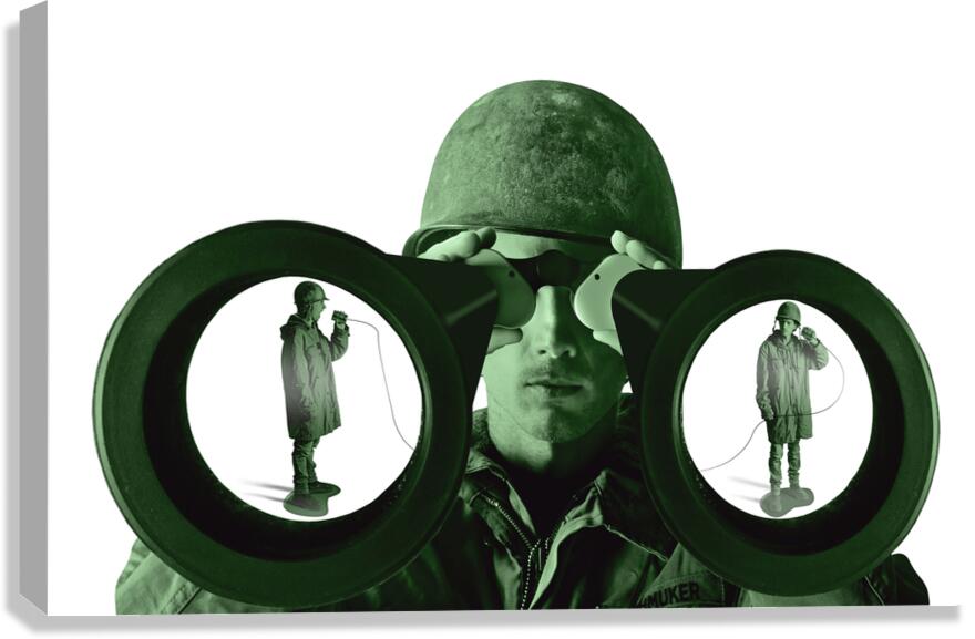 A figurative play in scouting comms with green army men and tin can phones talking games for eyes to see the intercept is but deceit
