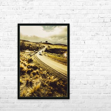 Car touring the Central Highlands in Tasmania Picture Frame Printing