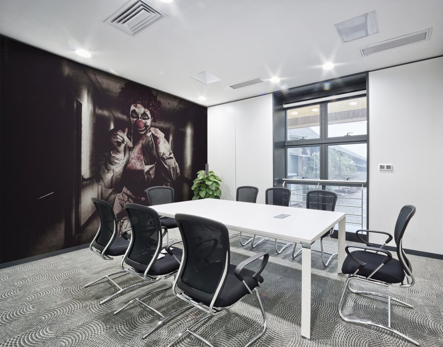 ABOUT THIS ARTWORK: CREEPY MEDICAL CLOWN IN GRUNGE HOSPITAL HALLWAY