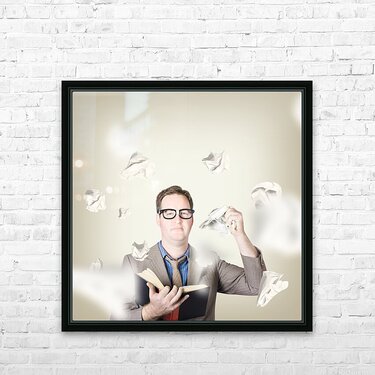 Get this artwork "Businessman revising strategy in choice for change" in a framed print.