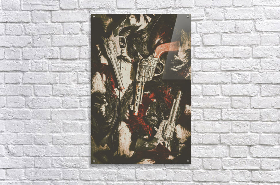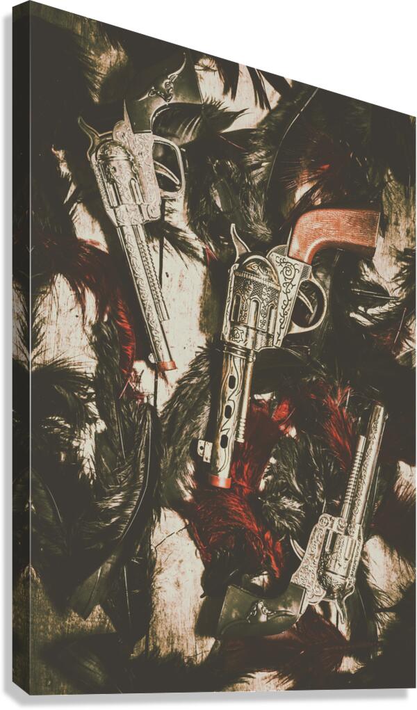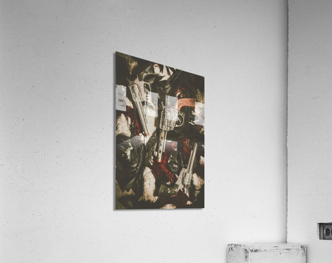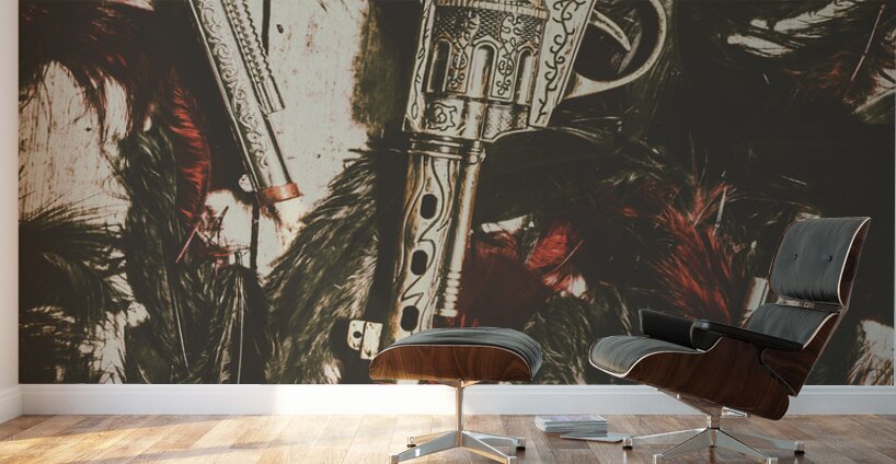 Battle of a childhood memory in a game of cowboys and Indians. Toy cap guns and feathers