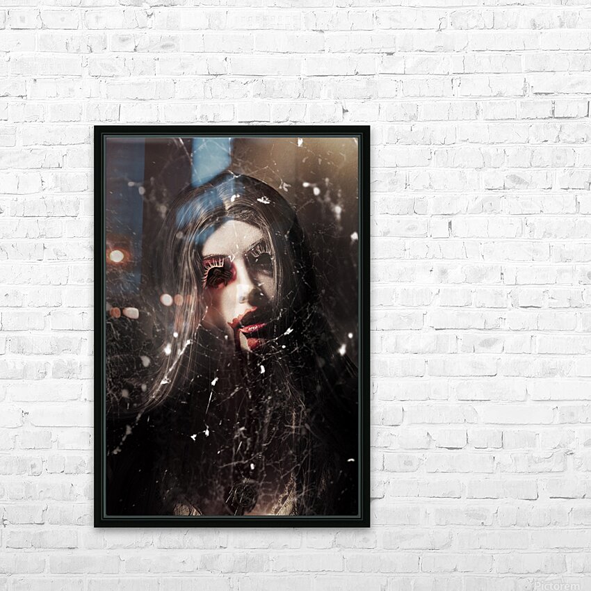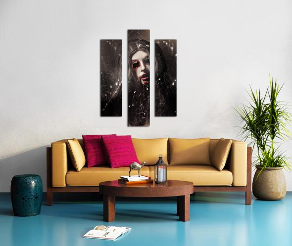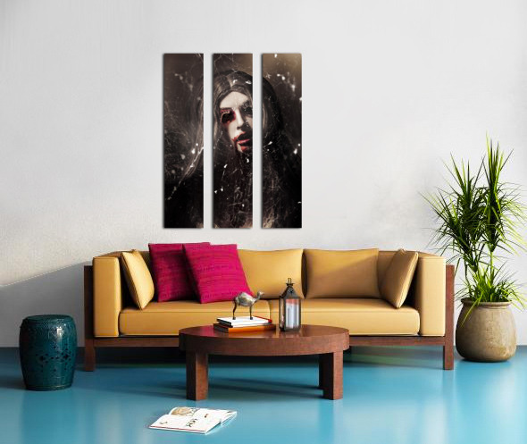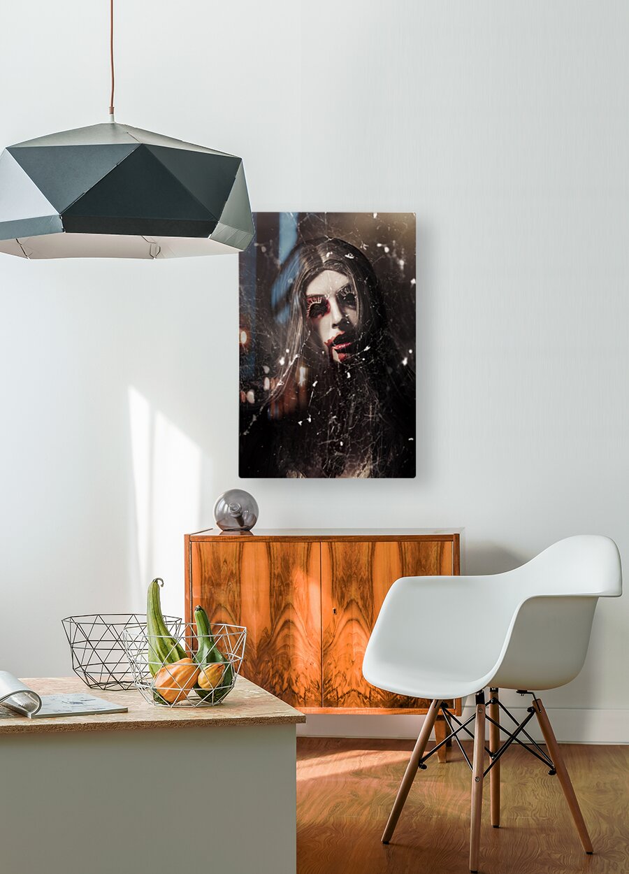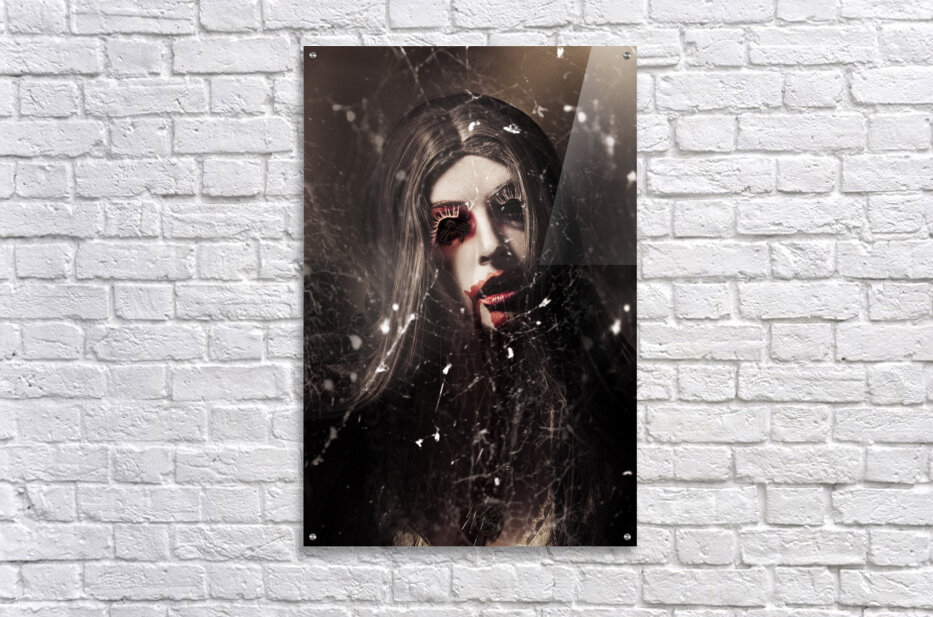 Female face of dark horror. Eye of the black widow Picture Frame Printing