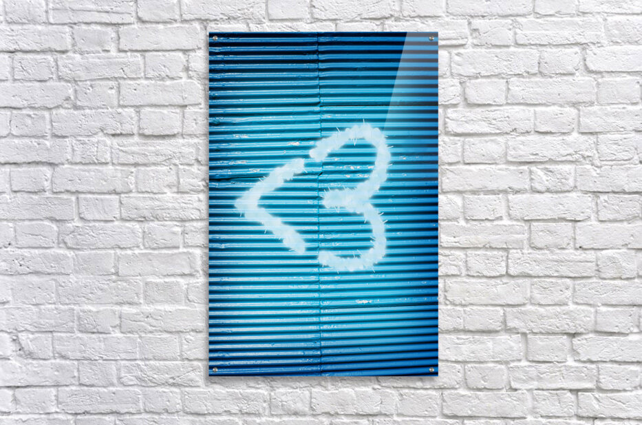 Urban graffiti scene on a heart shaped spray painting on blue garage background