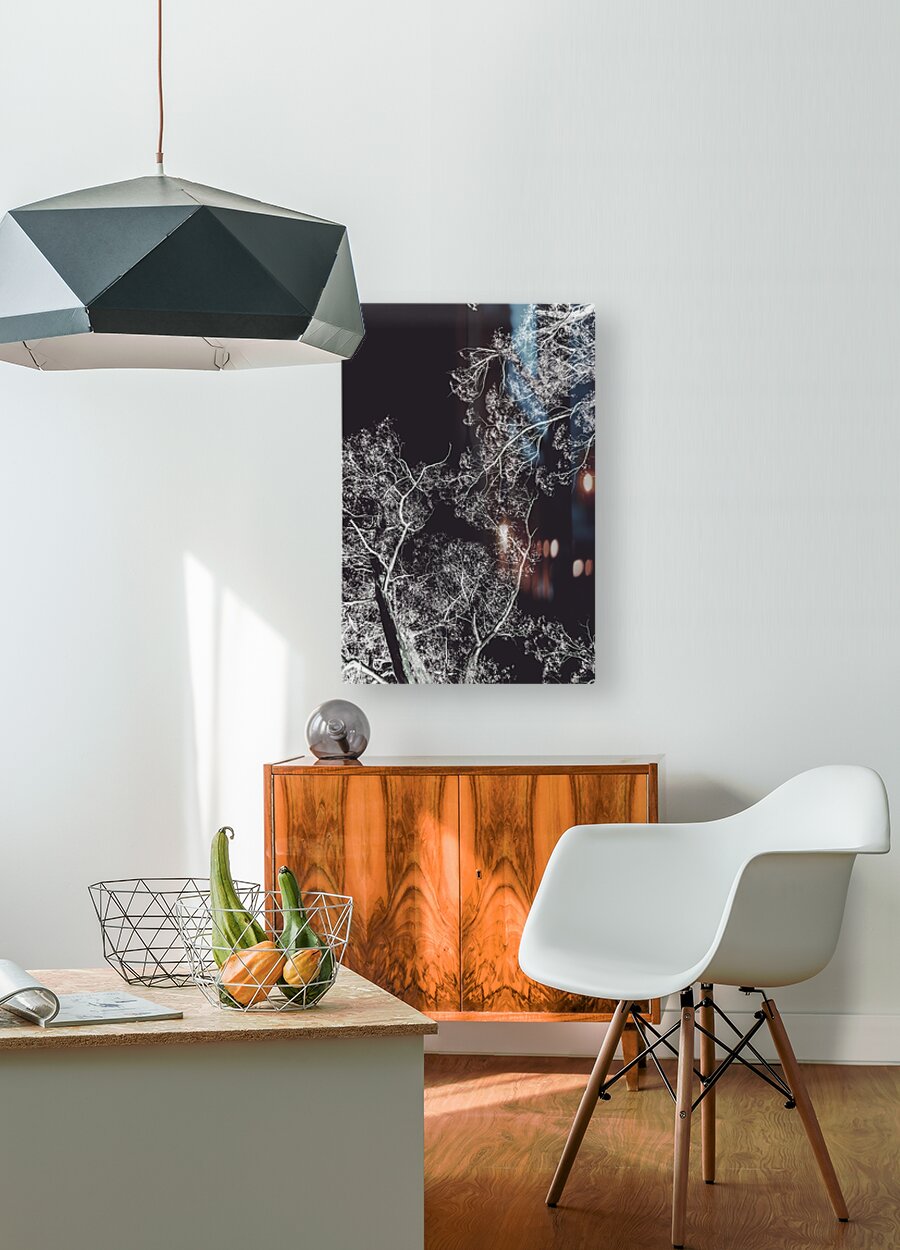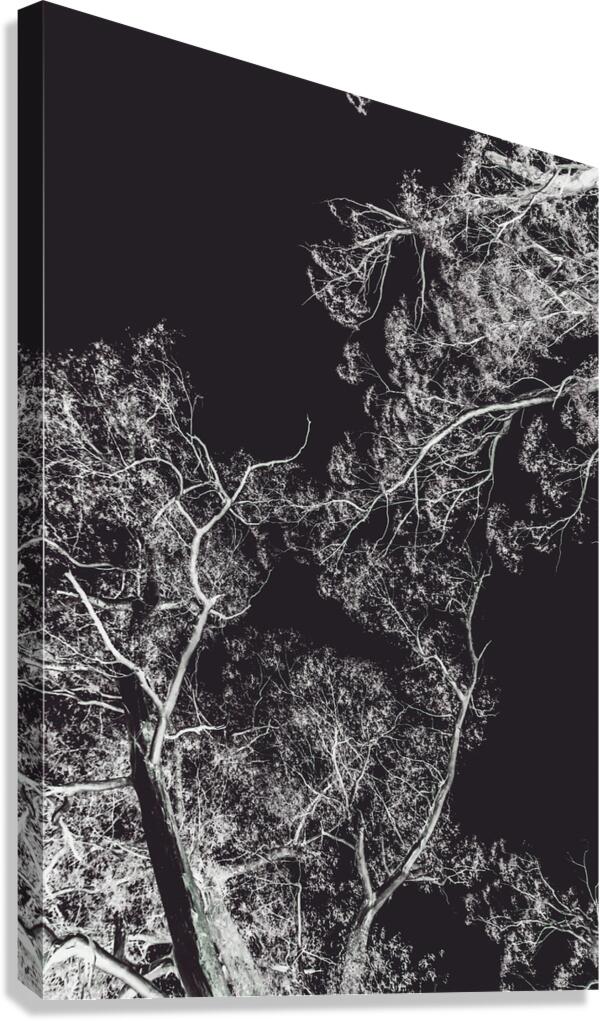 Drama filled sky of contrasted mystery with woodland trees twisted in dreamlike contrasts