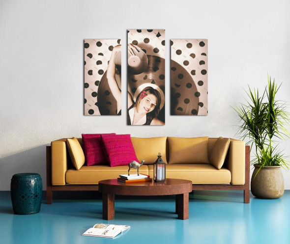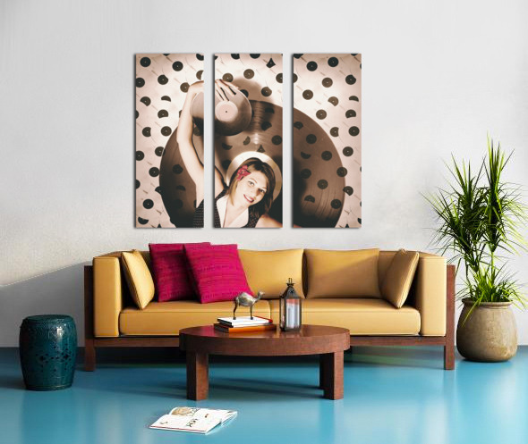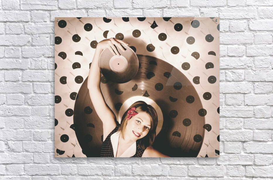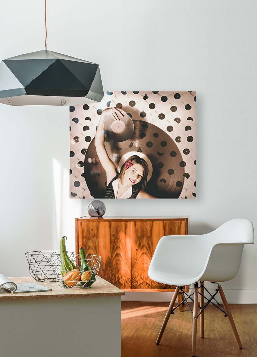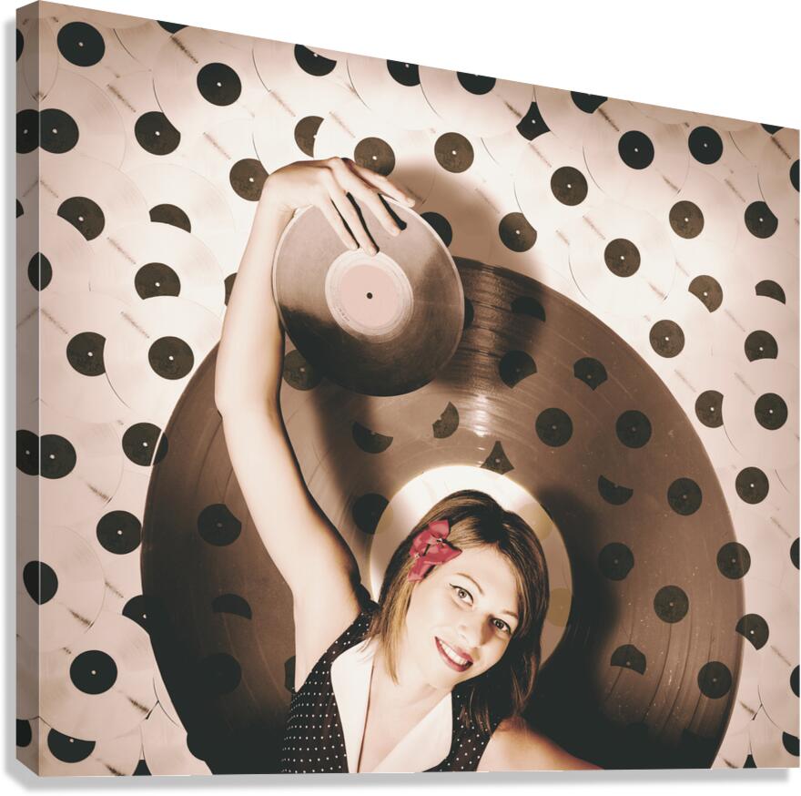 Get this artwork "Pinup DJ rocking around the clock " in a framed print.