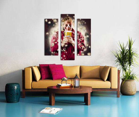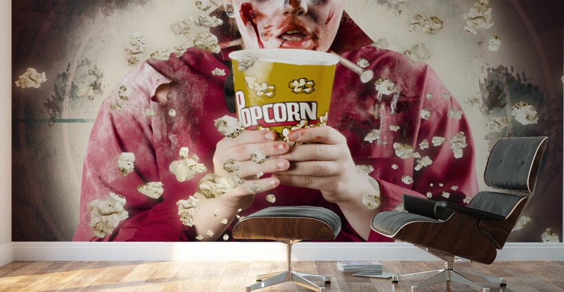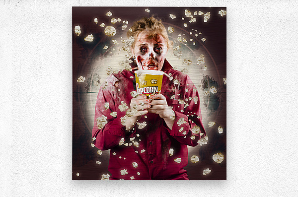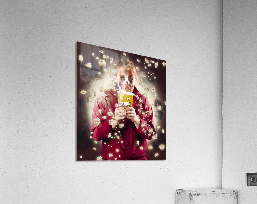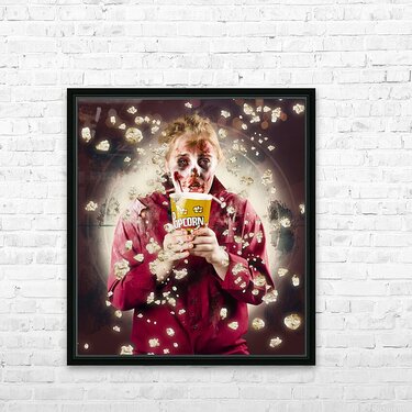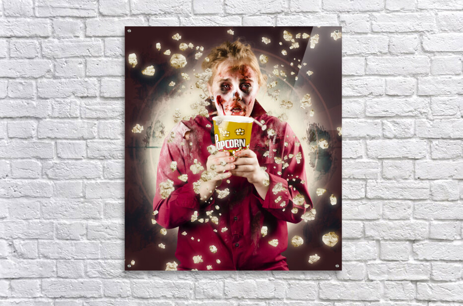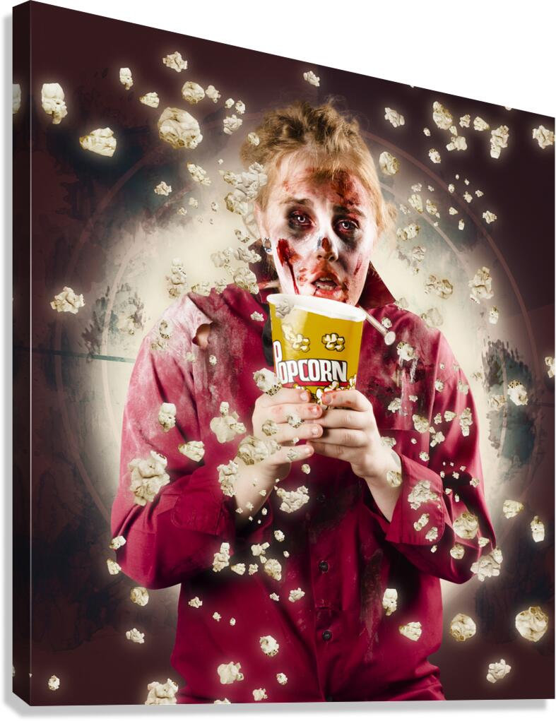 Get this artwork "Creepy possessed girl watching horror movie" in a framed print.