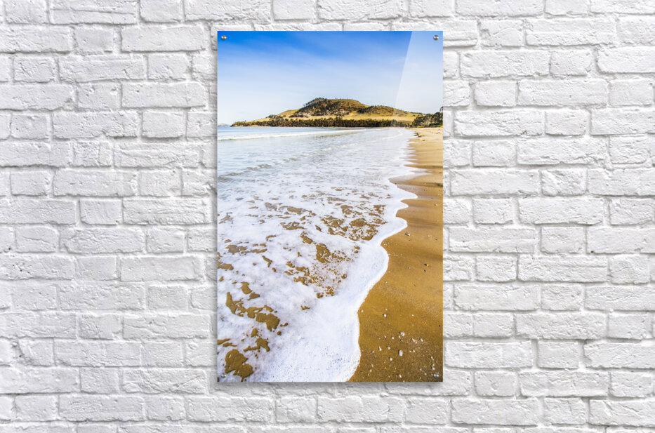 Vertical image on lovely coastline scenery washed in the shorelines of Seven Mile Beach in Tasmania Australia