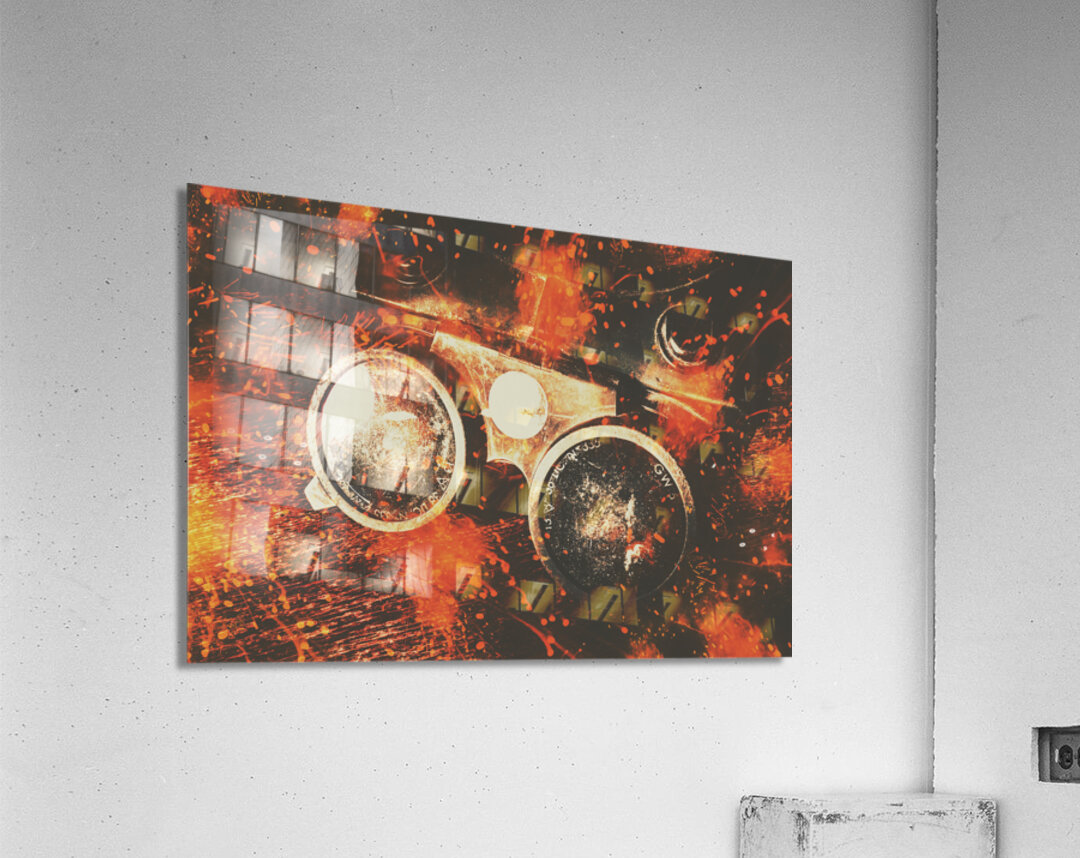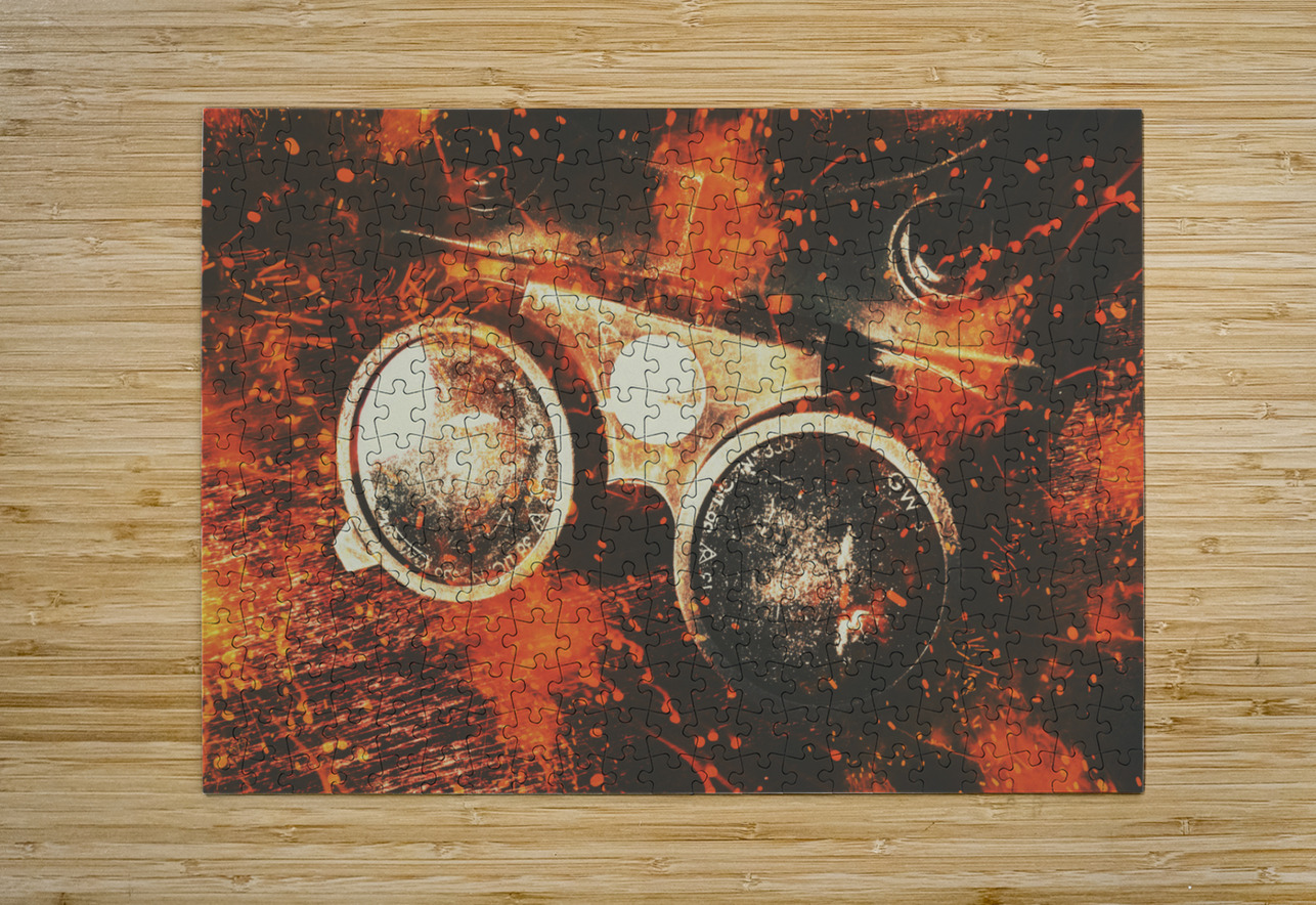 Still life abstraction in a reconstruction of industrial grunge with flames and workshop fire. Foundry formations