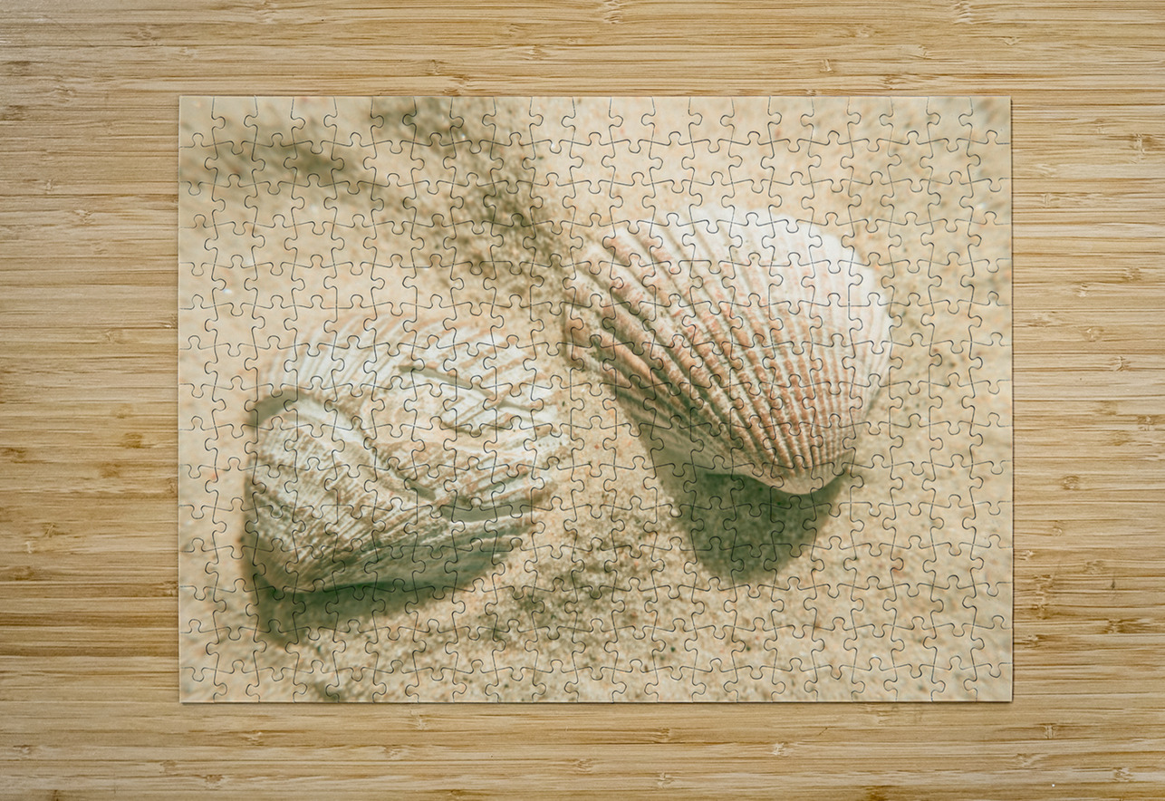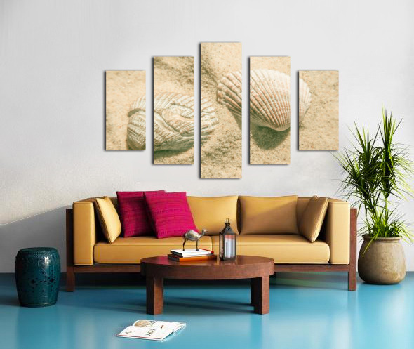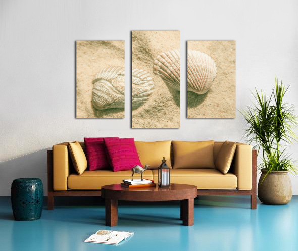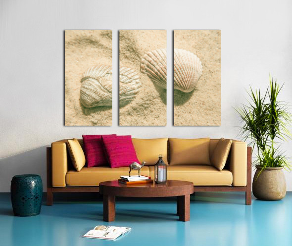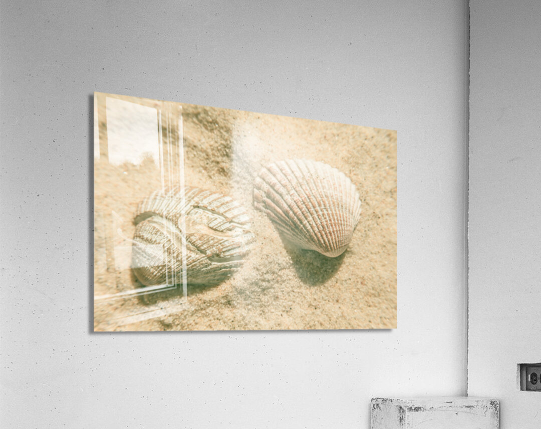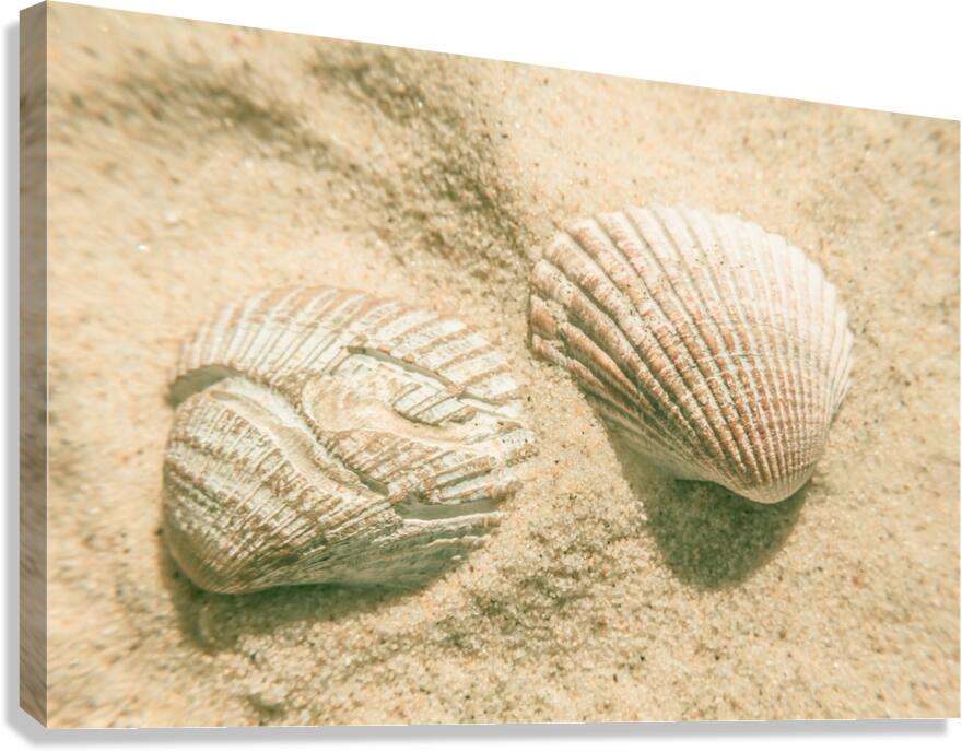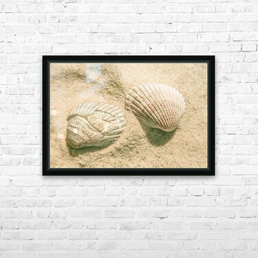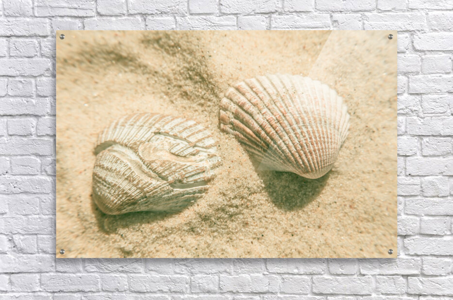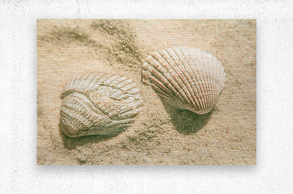 Minimalist seaside art on a shelling of two clams in pastel tone. Simply coastal