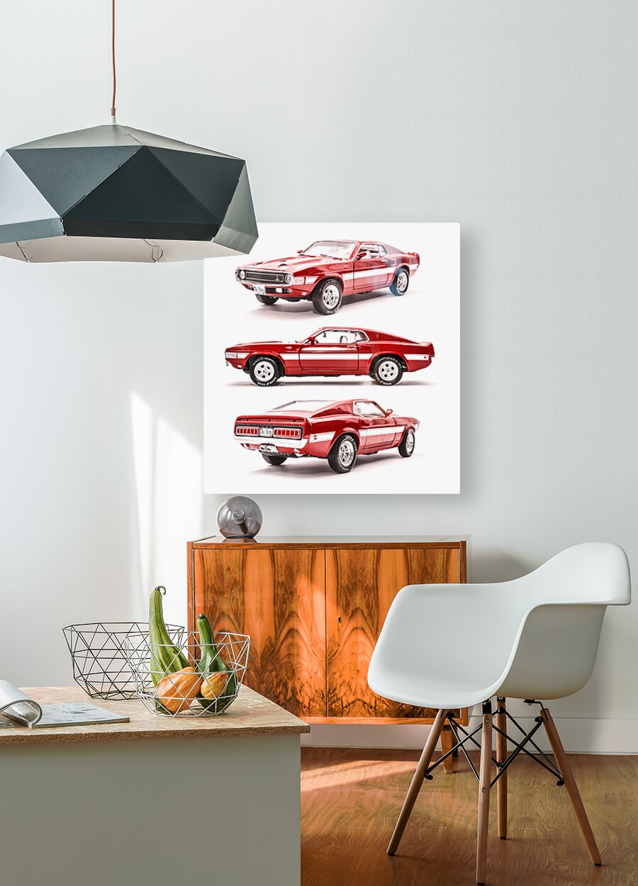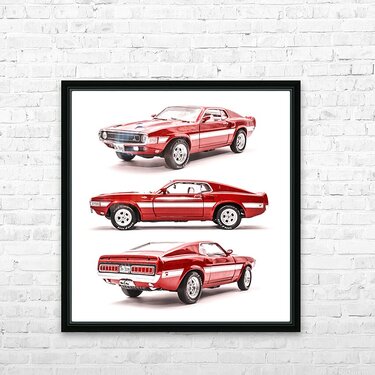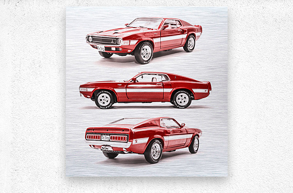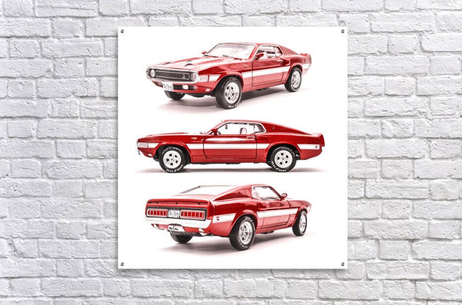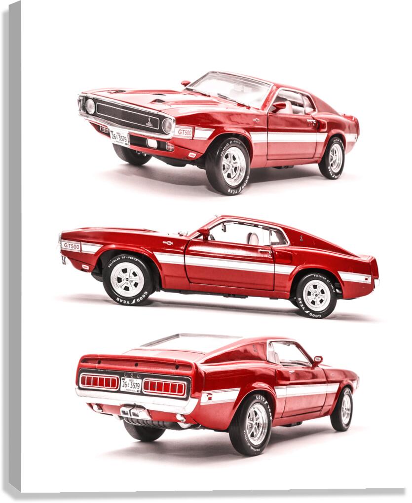 Automotive triptych on the Shelby GT500 street car in side front and rear perspectives