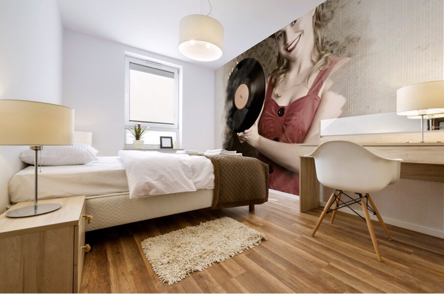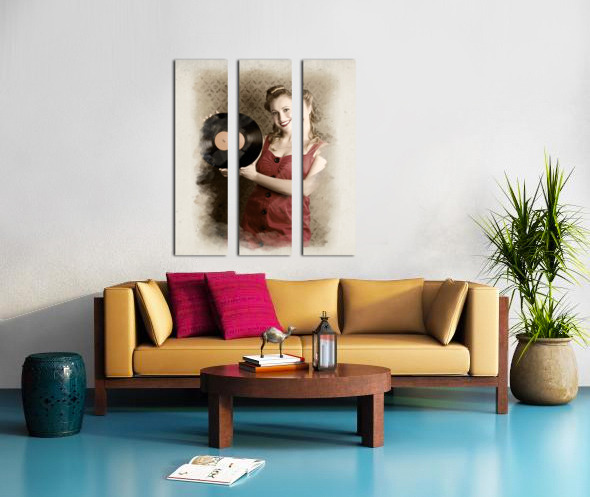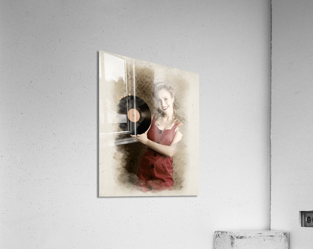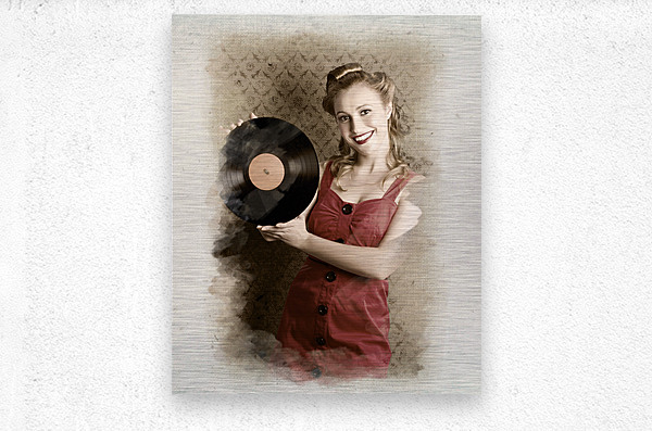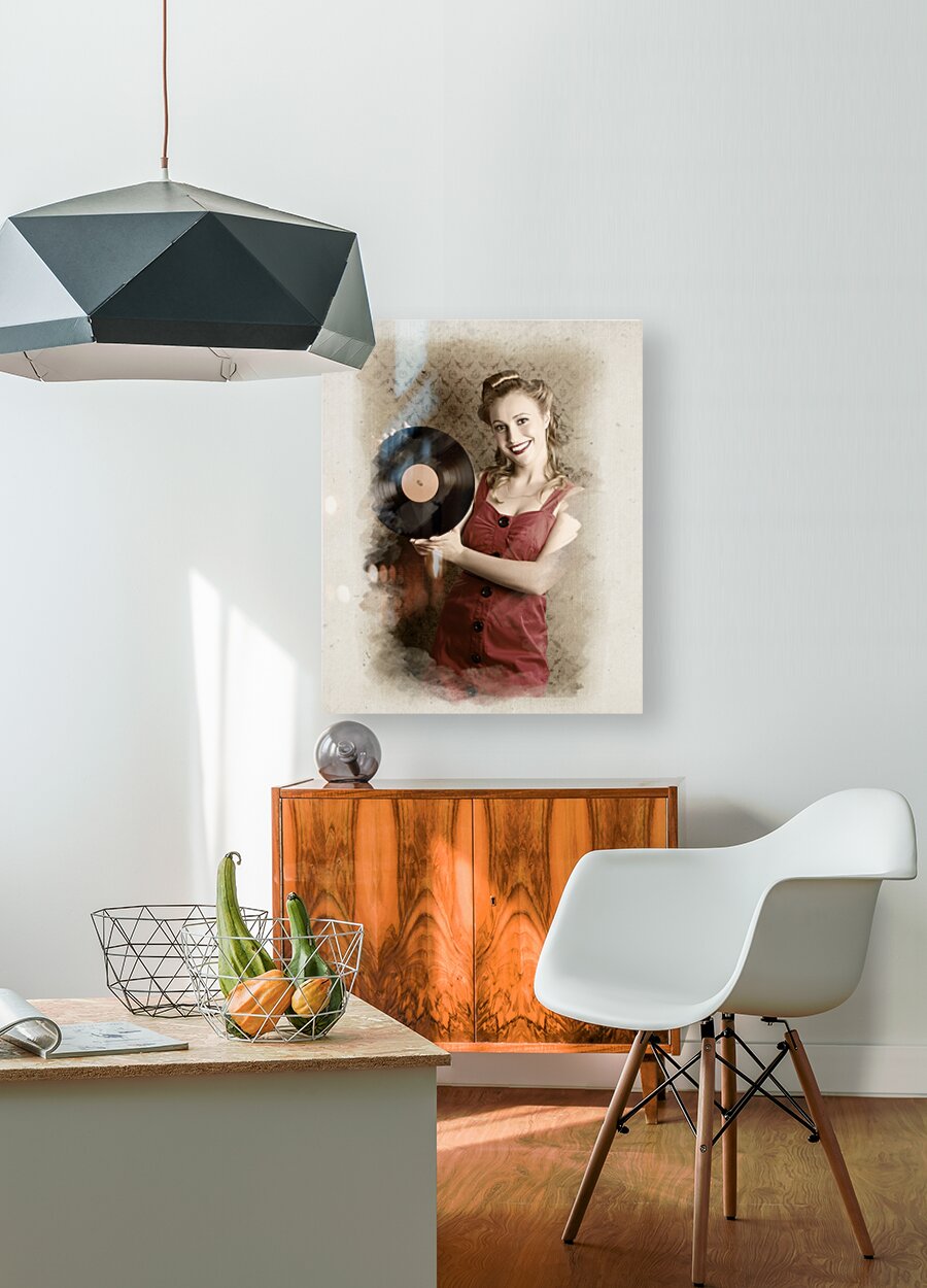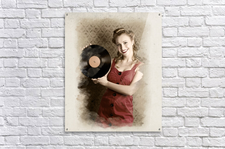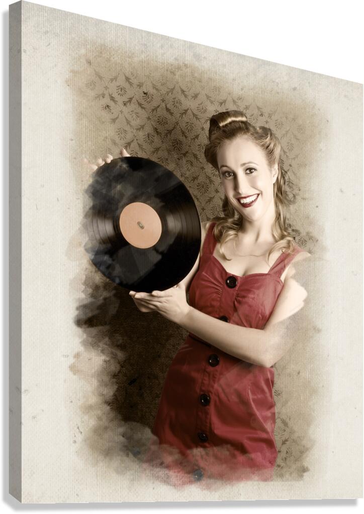ABOUT THIS ARTWORK: PIN-UP ROCKABILLY WOMAN HOLDING VINYL RECORD LP