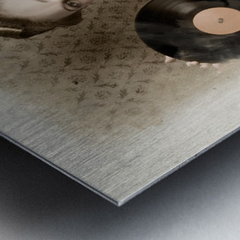 Pin-Up Rockabilly Woman Holding Vinyl Record LP  Wood print