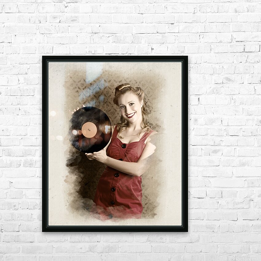 Pin-Up Rockabilly Woman Holding Vinyl Record LP Picture Frame Printing