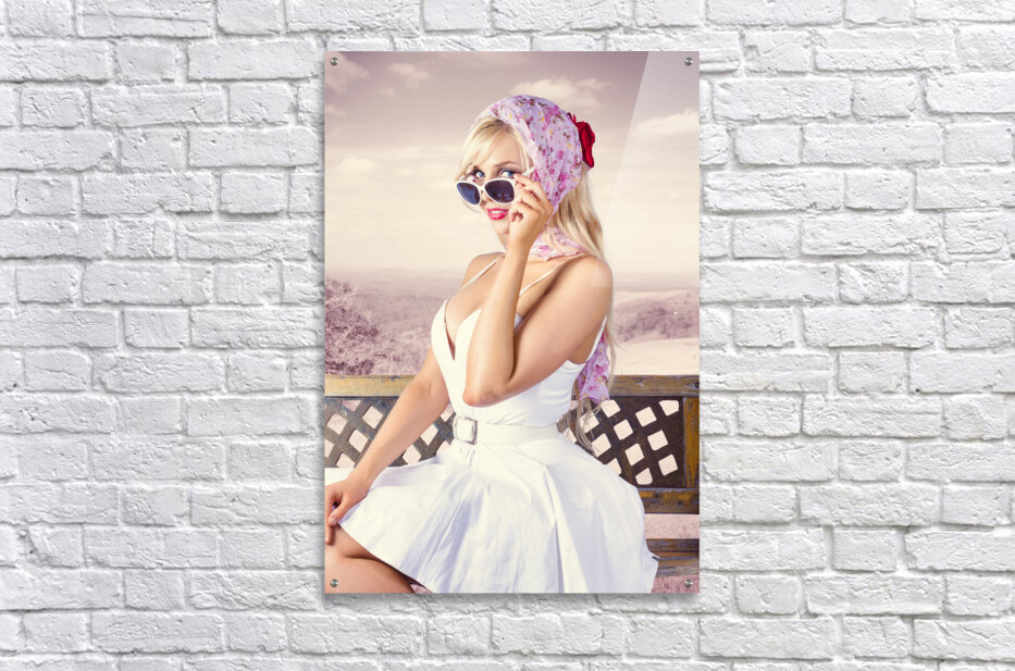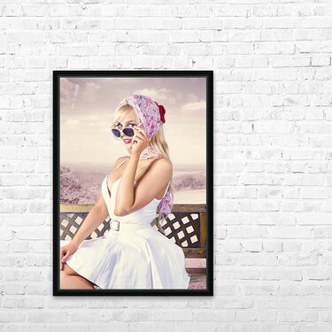 Beautiful retro fashion girl. australian landscape Picture Frame Printing