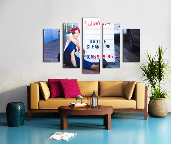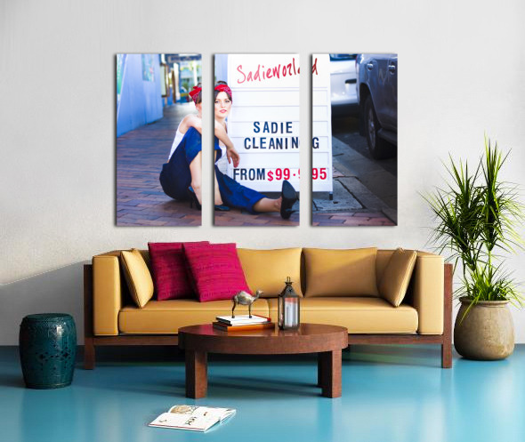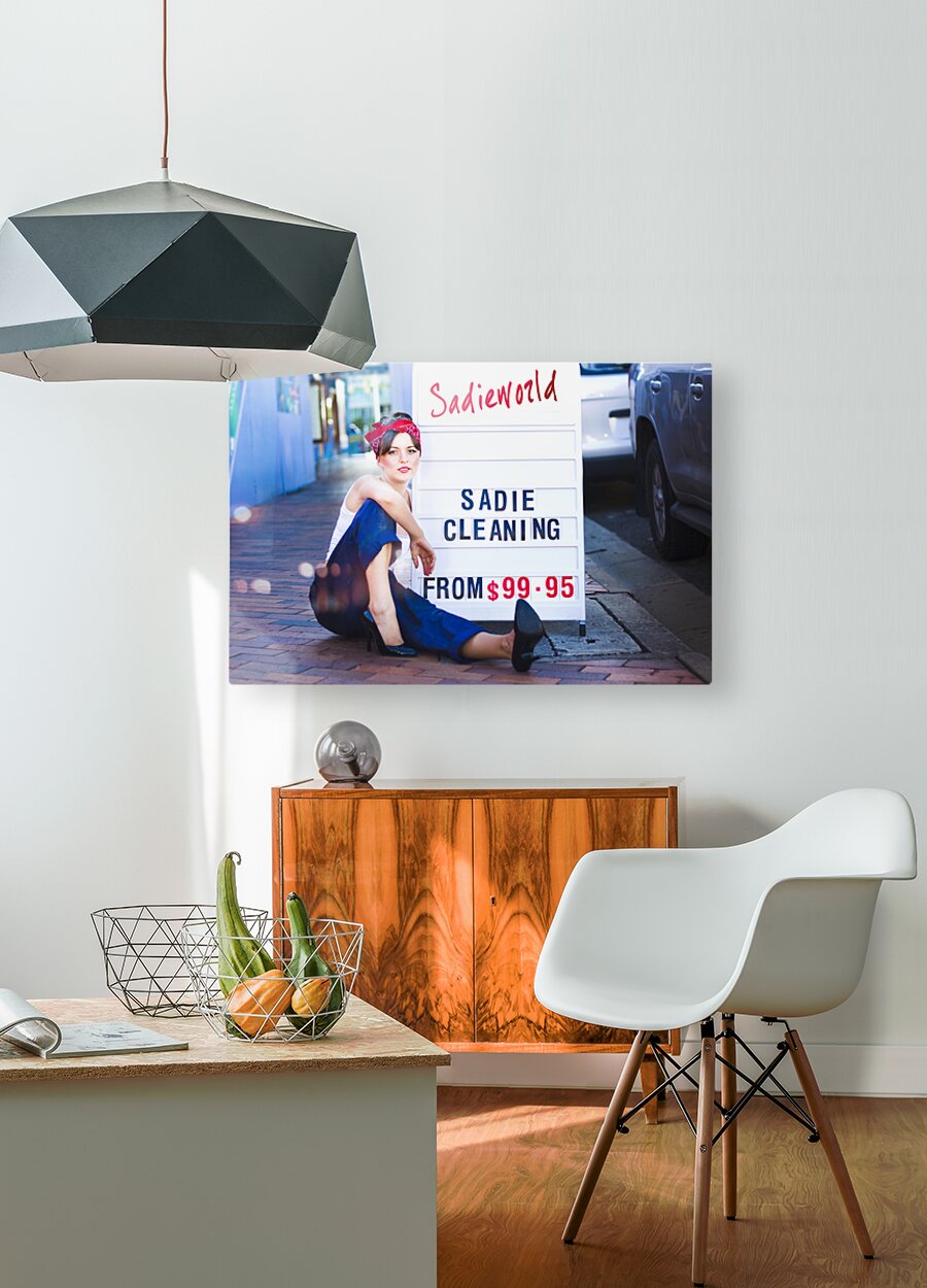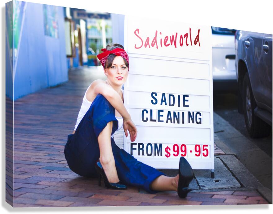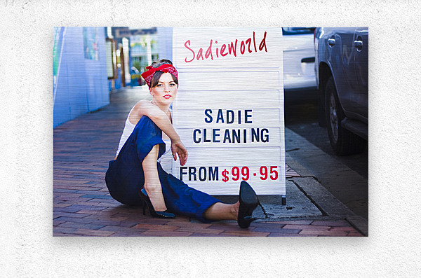 Sadie The Cleaning Lady Marketing Her House Clean And Tidy Service While Sitting Next To A Sadieworld Advertising Sign On The Street