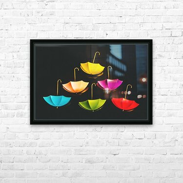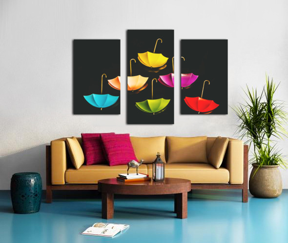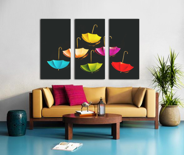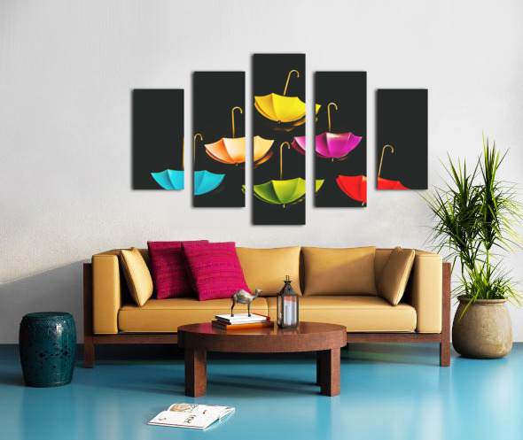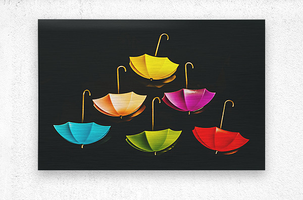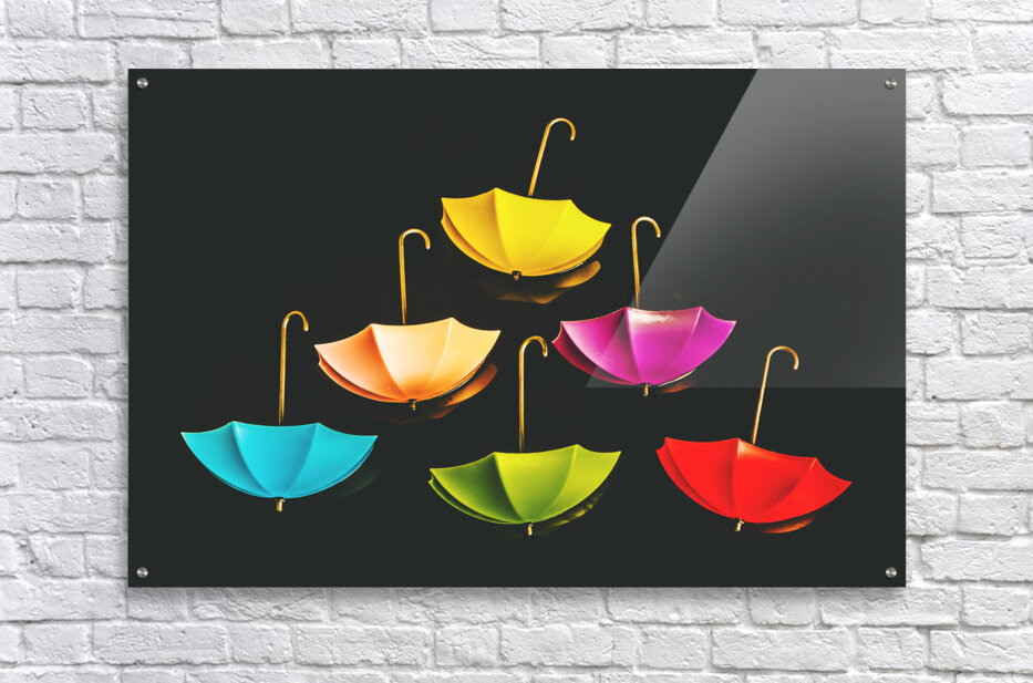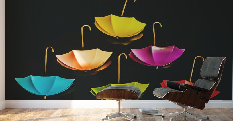 Retro pop art still life on a set of colourful umbrellas mixed up downside up. Weather or not