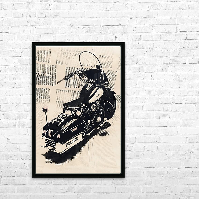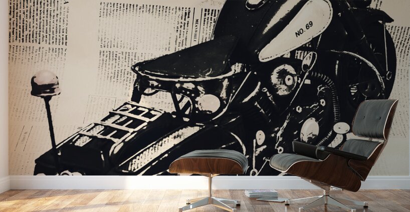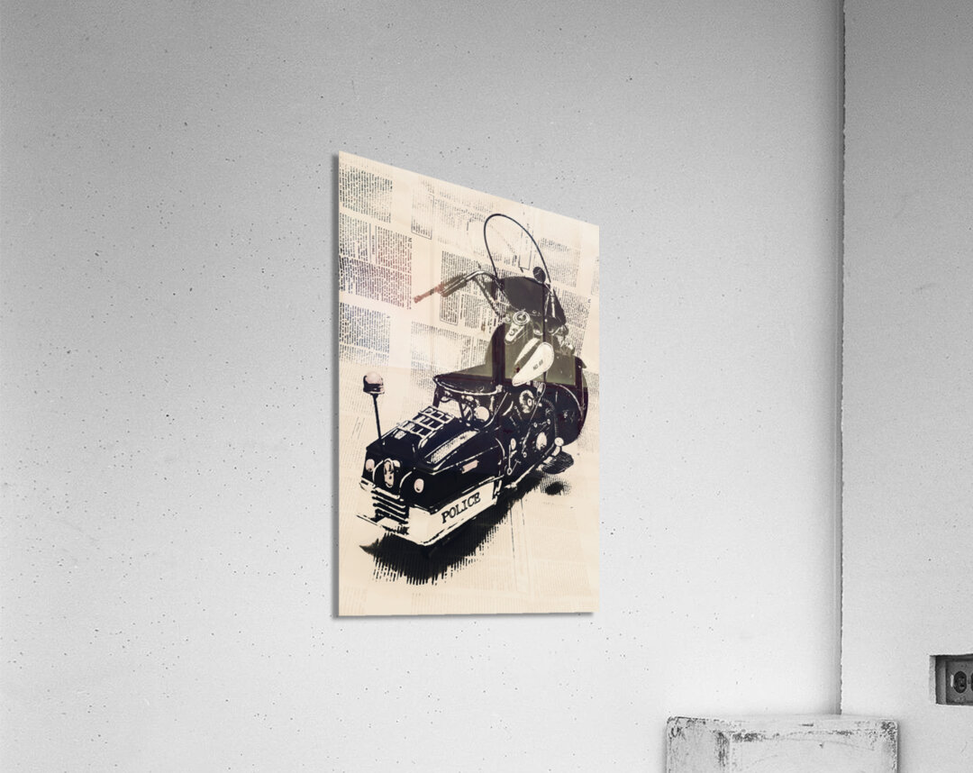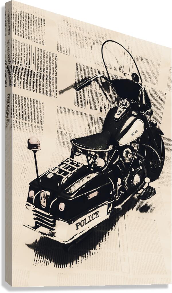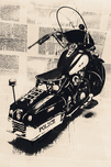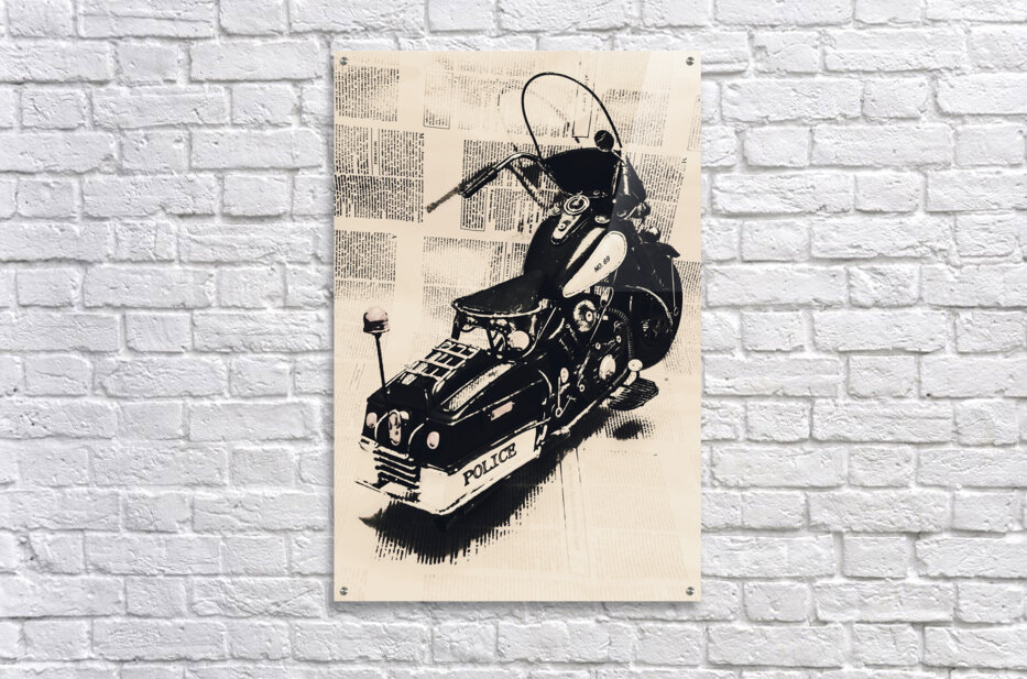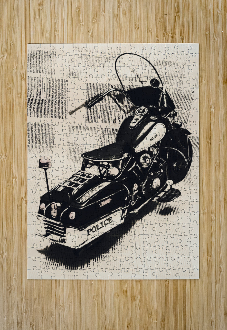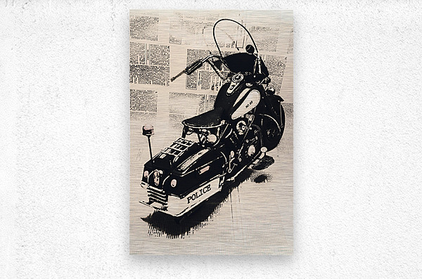 Vintage motorcyle art on a police chopper on text of statute and enactment. Stationary