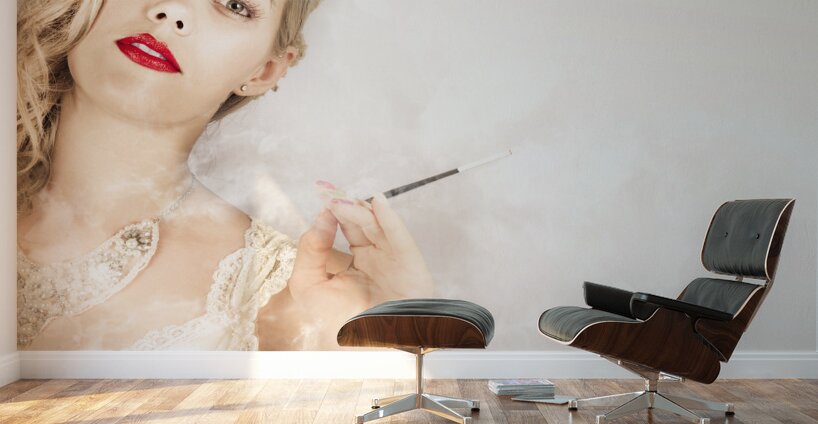 Beautiful Female Model Actress Smoking In Luxury Fashion In A Vintage Depiction Of Classic Cinema
