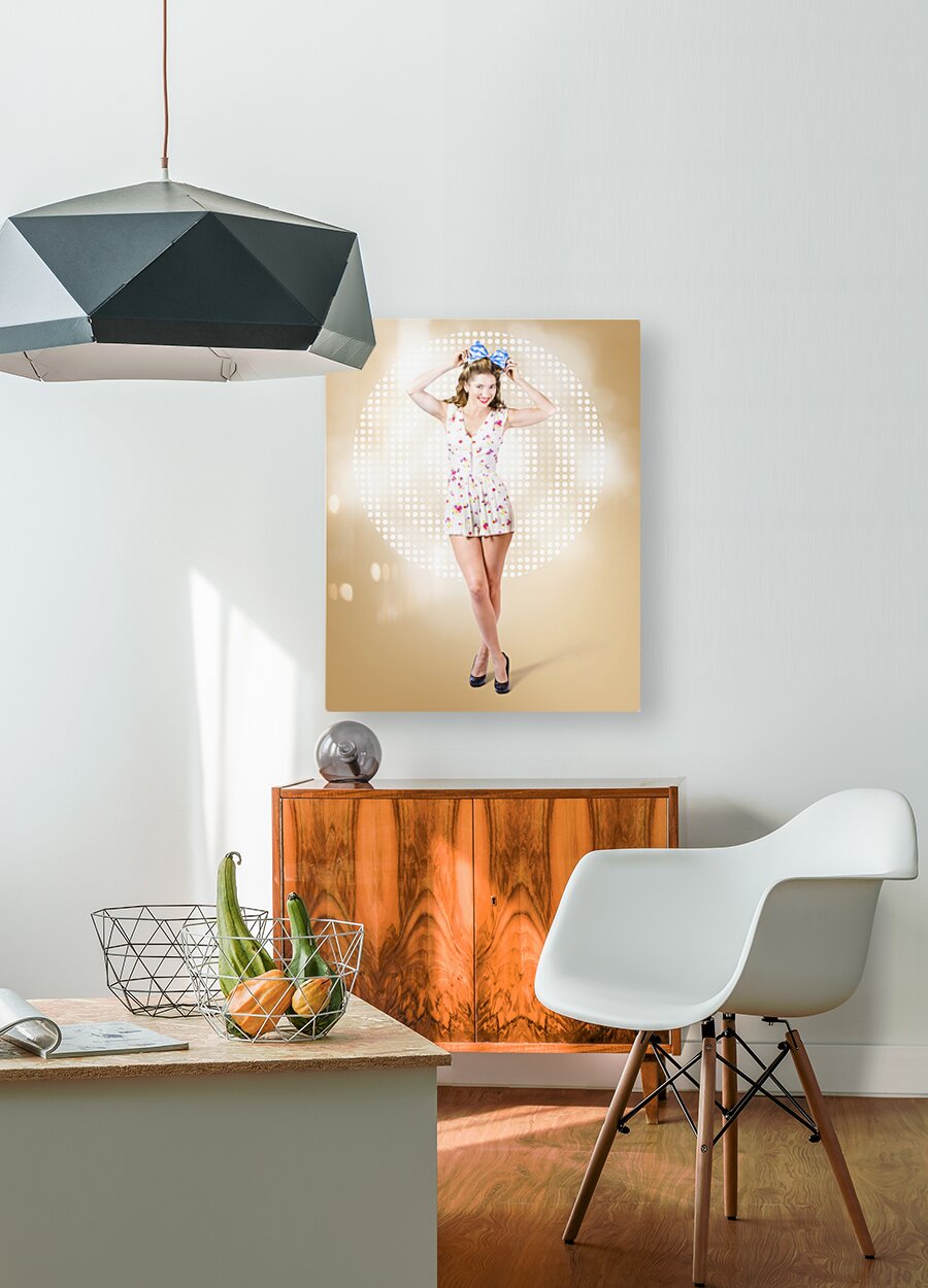Modelling pinup girl wearing bow hair accessory  Wood print
