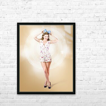 Modelling pinup girl wearing bow hair accessory Picture Frame Printing