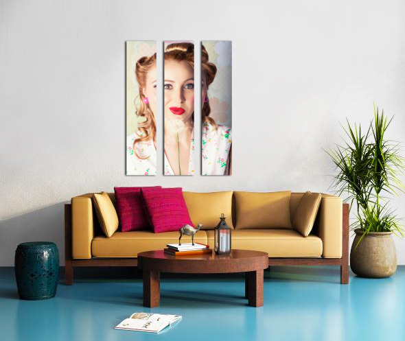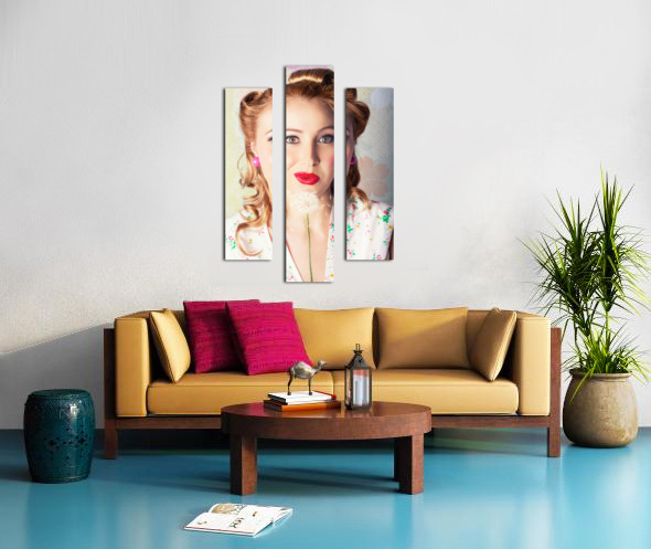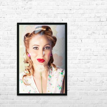 Spring Beauty. Beautiful Retro Girl Blowing Flower Picture Frame Printing